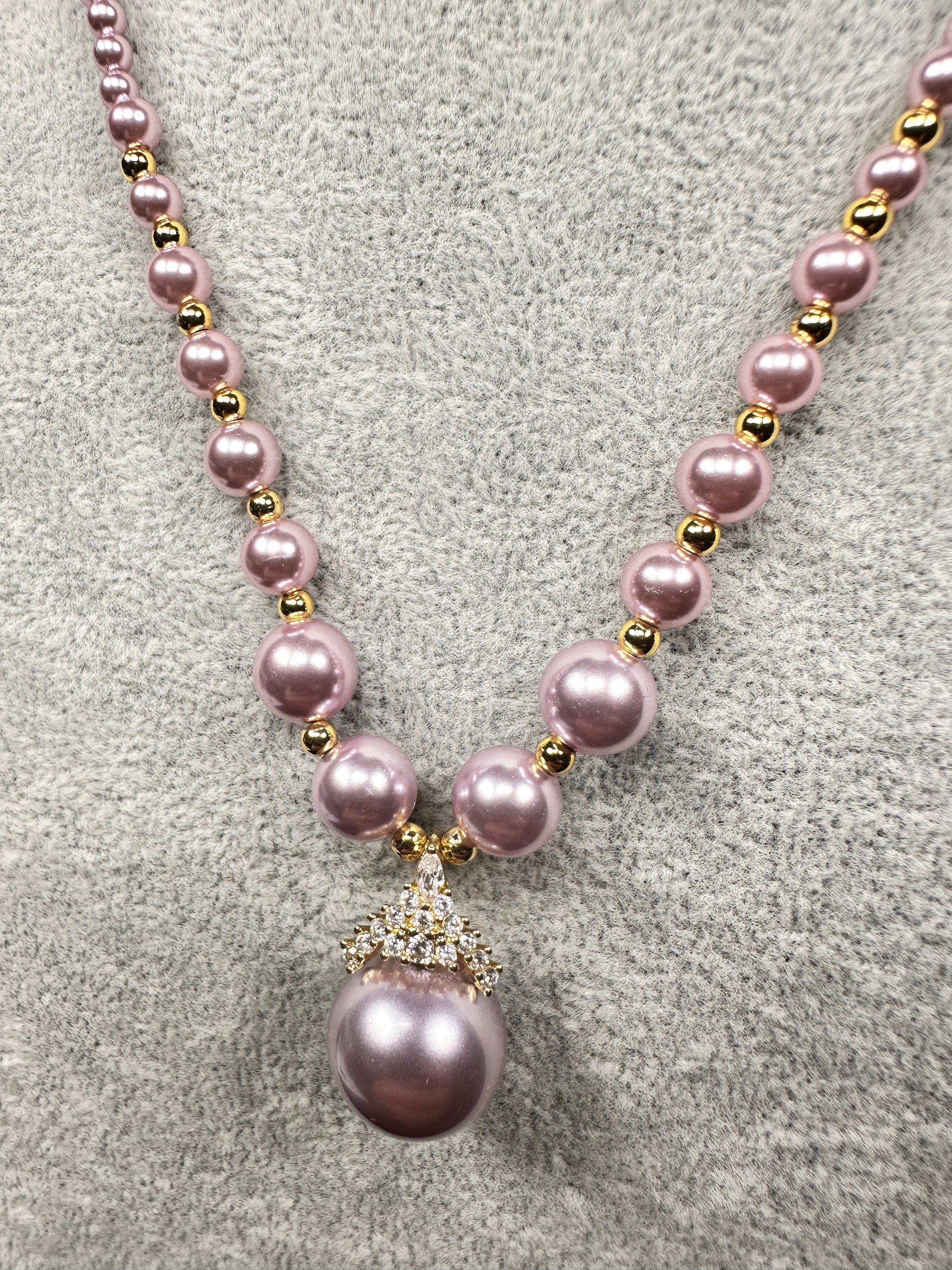 Violet Vertex · Lavender Pearl & Stone Pendant Necklace
