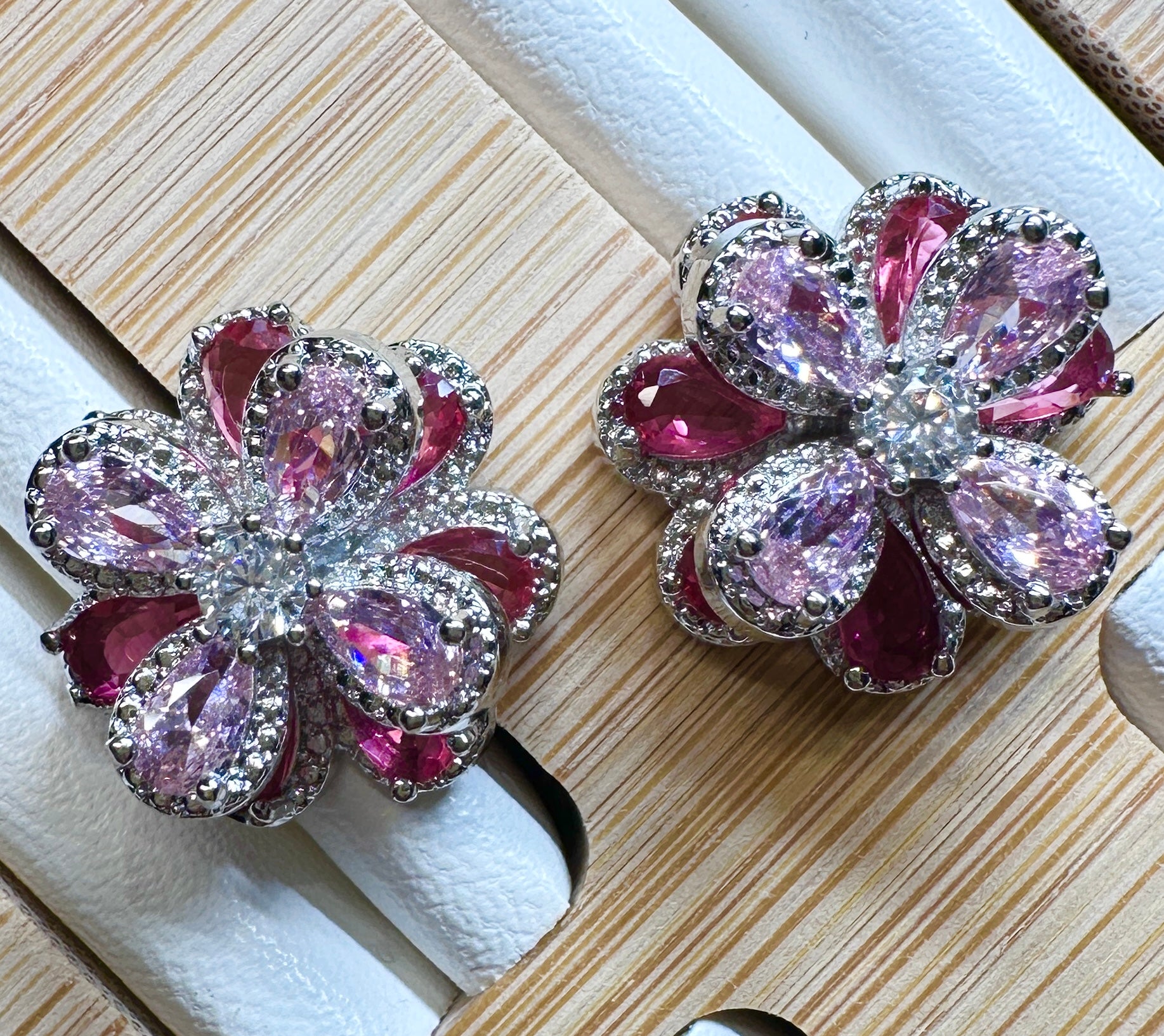 Embrace a soft and romantic energy. The Blushing Aura Studs feature the succulent motif in a cool silver-toned metal. Its petals are artfully set with stones in a gradient of pink and red hues, creating a beautiful, watercolor-like effect that mimics the delicate blush of a living succulent. The central white stone adds a crisp, bright focal point to this wearable watercolor painting.