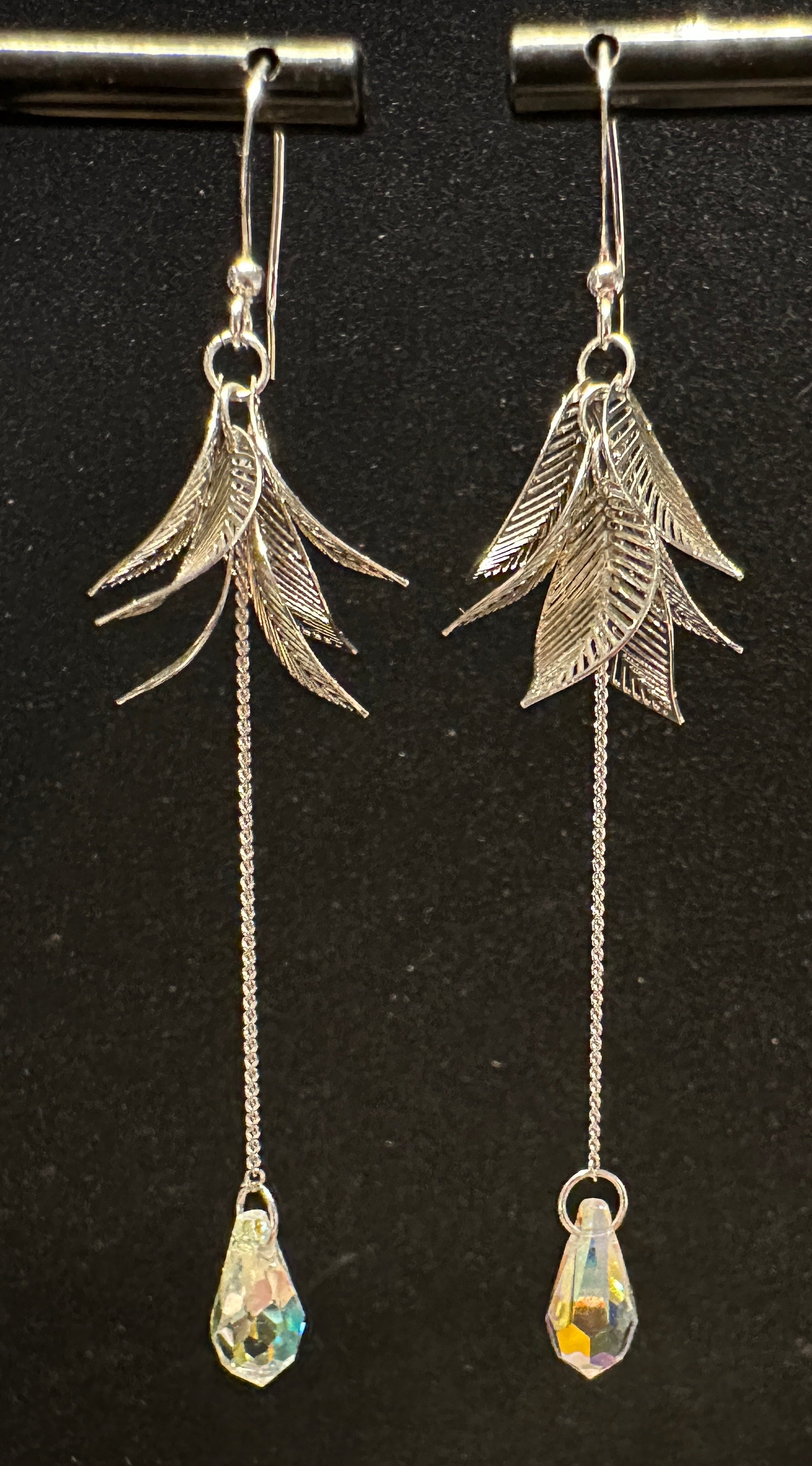 Luna's Sigh Ear Hooks | Silver Leaf Design with Teardrop Drop