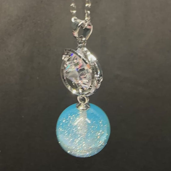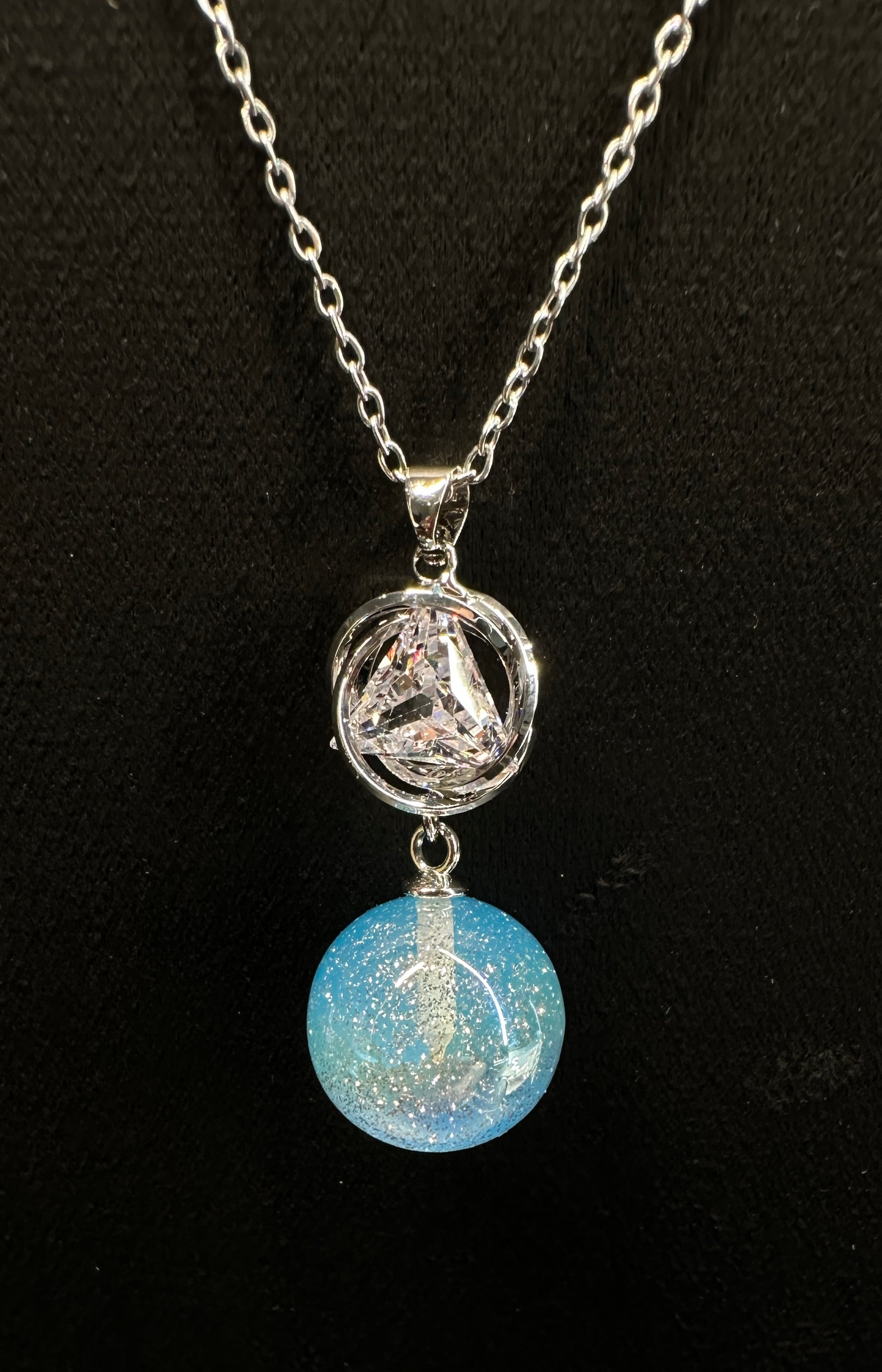 The Orbit & Apex Galaxy Pendant is a wearable equation of universal balance. The design begins with a striking geometric narrative: two perfectly overlapping circles, centered by a sharp triangular white stone - representing the eternal dance of celestial bodies guided by a distant star's light. This symbolic charm elegantly descends into the deep, swirling mysteries of a captivating blue galaxy sphere, where cosmic dust and starlight converge. For those who find beauty in the marriage of precise geometry and cosmic wonder.