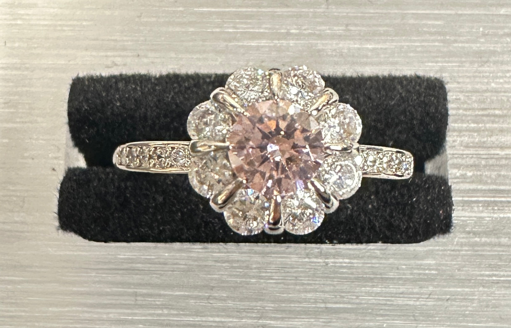 Adorn yourself with a blooming Daisy. This adjustable ring features a petite centerstone set within a floral halo, on a band with a half-circle of sparkling accents.