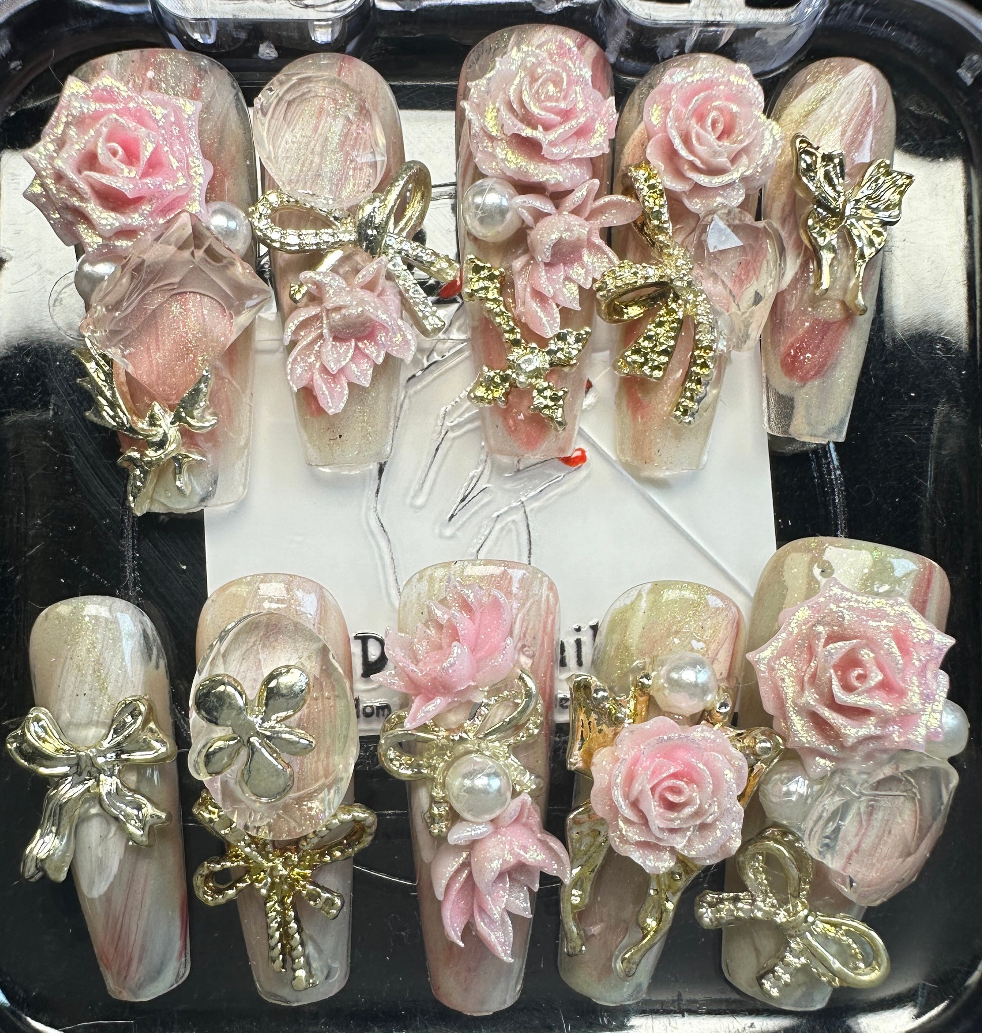 The Blossom & Glamour Collection – every set is a handcrafted floral masterpiece. Meticulous, multi-step artistry blooms on each nail, adorned with crystals and ornate details. Each design is one-of-a-kind, waiting for its only owner.