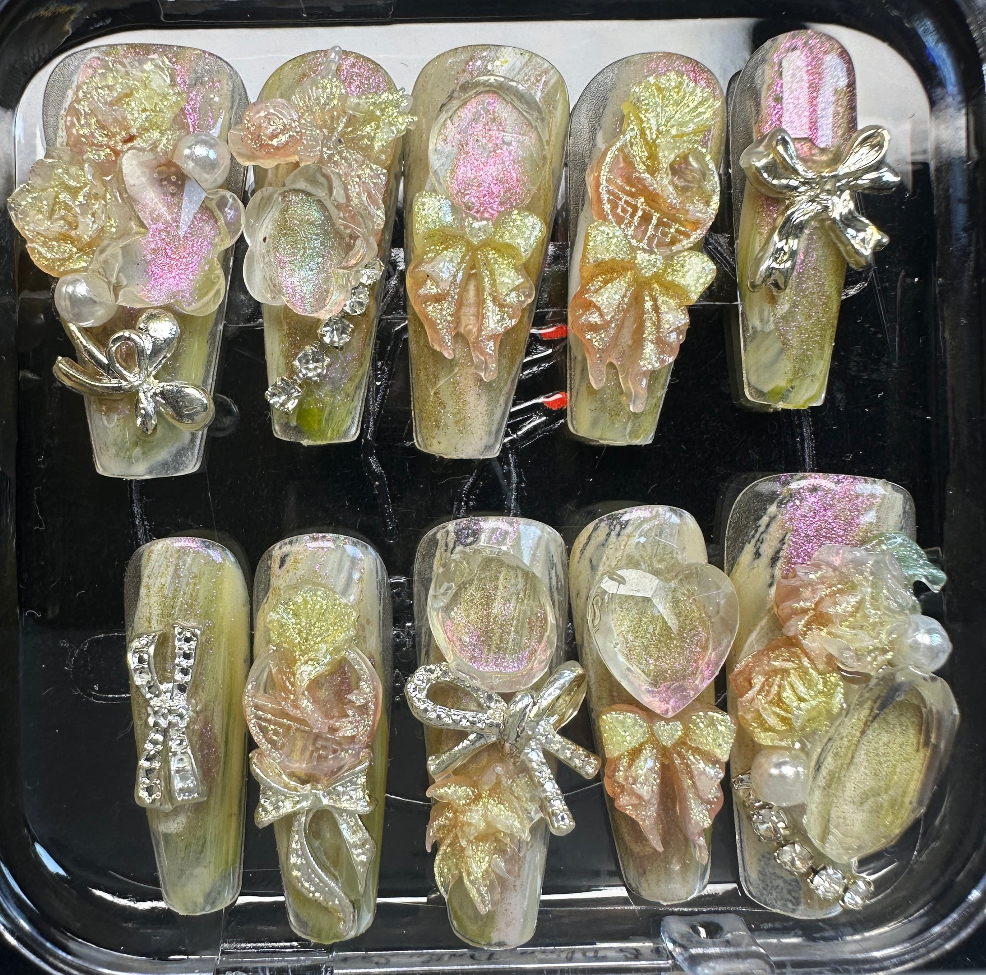 The Blossom & Glamour Collection – every set is a handcrafted floral masterpiece. Meticulous, multi-step artistry blooms on each nail, adorned with crystals and ornate details. Each design is one-of-a-kind, waiting for its only owner.