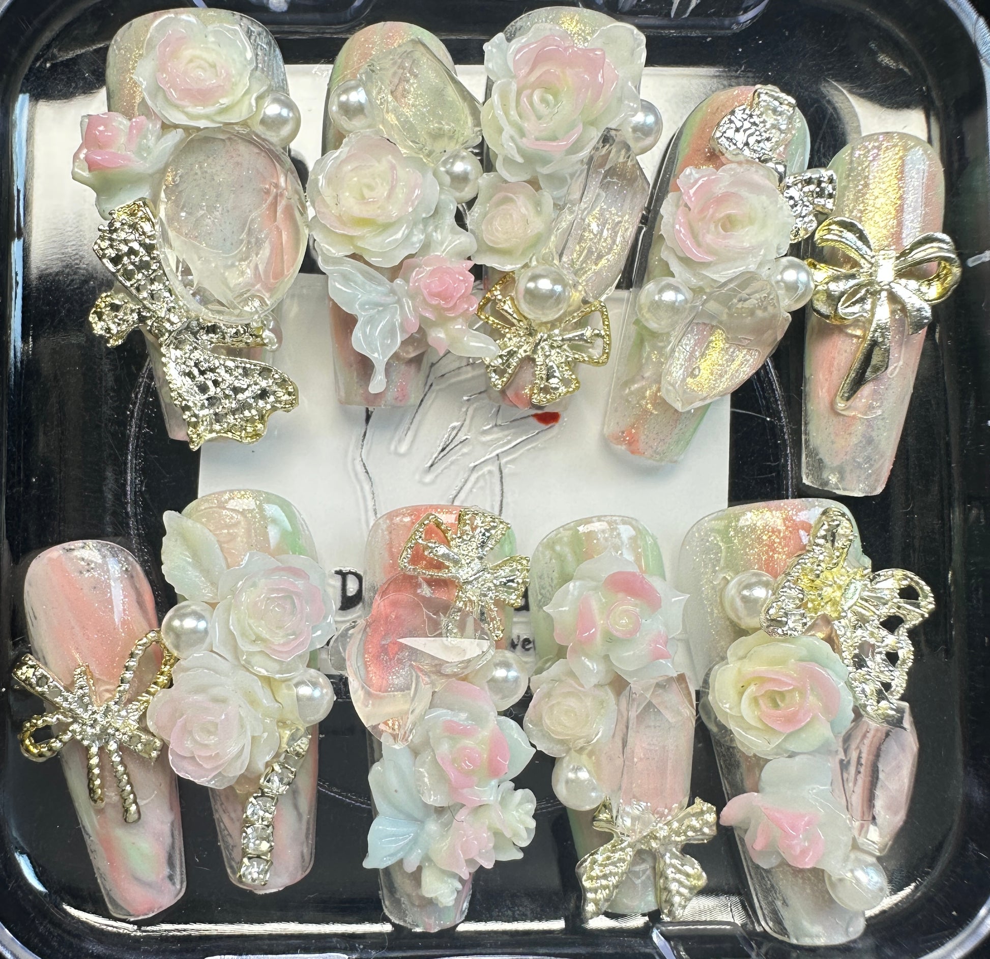 The Blossom & Glamour Collection – every set is a handcrafted floral masterpiece. Meticulous, multi-step artistry blooms on each nail, adorned with crystals and ornate details. Each design is one-of-a-kind, waiting for its only owner.