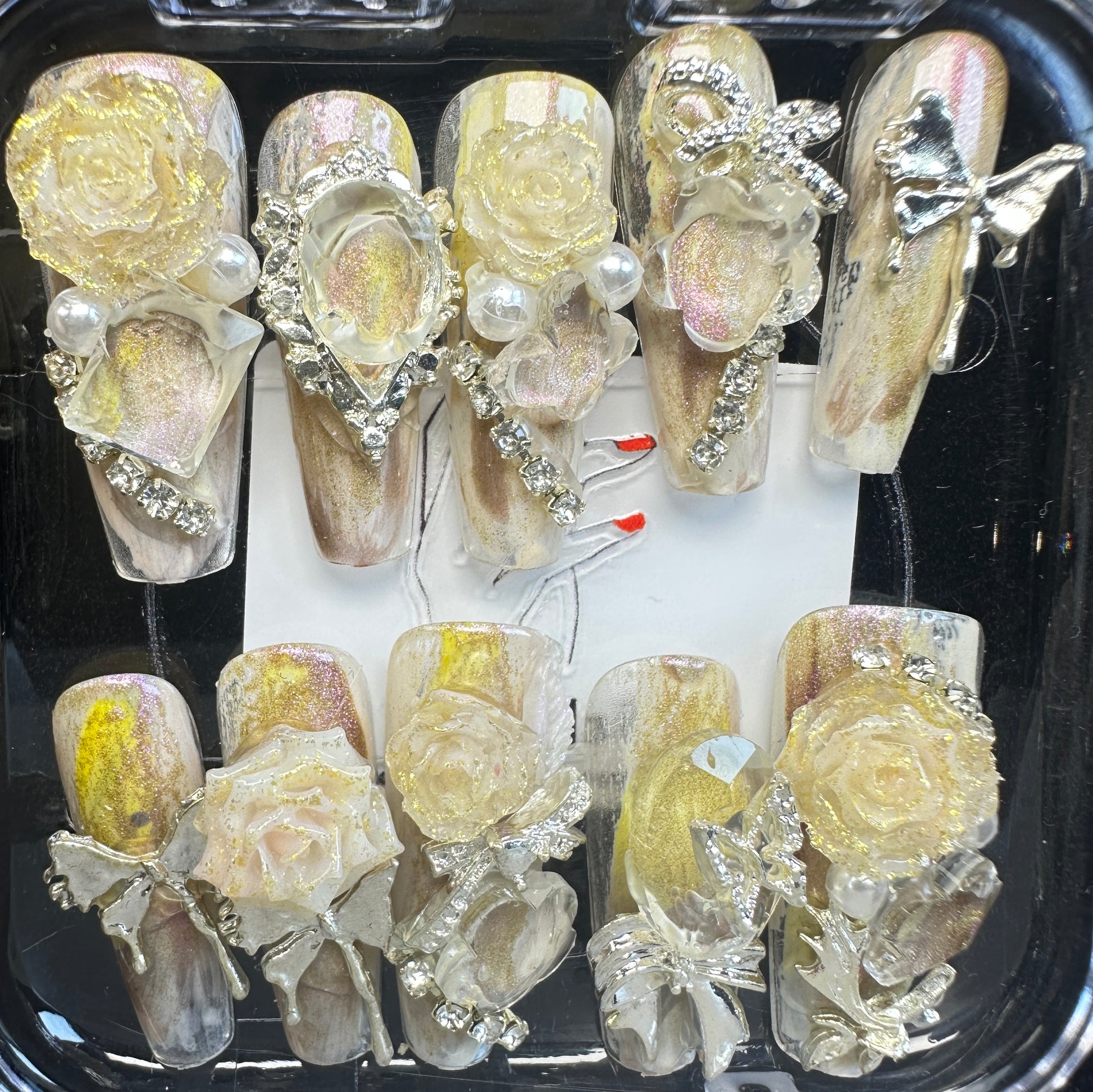 The Blossom & Glamour Collection – every set is a handcrafted floral masterpiece. Meticulous, multi-step artistry blooms on each nail, adorned with crystals and ornate details. Each design is one-of-a-kind, waiting for its only owner.
