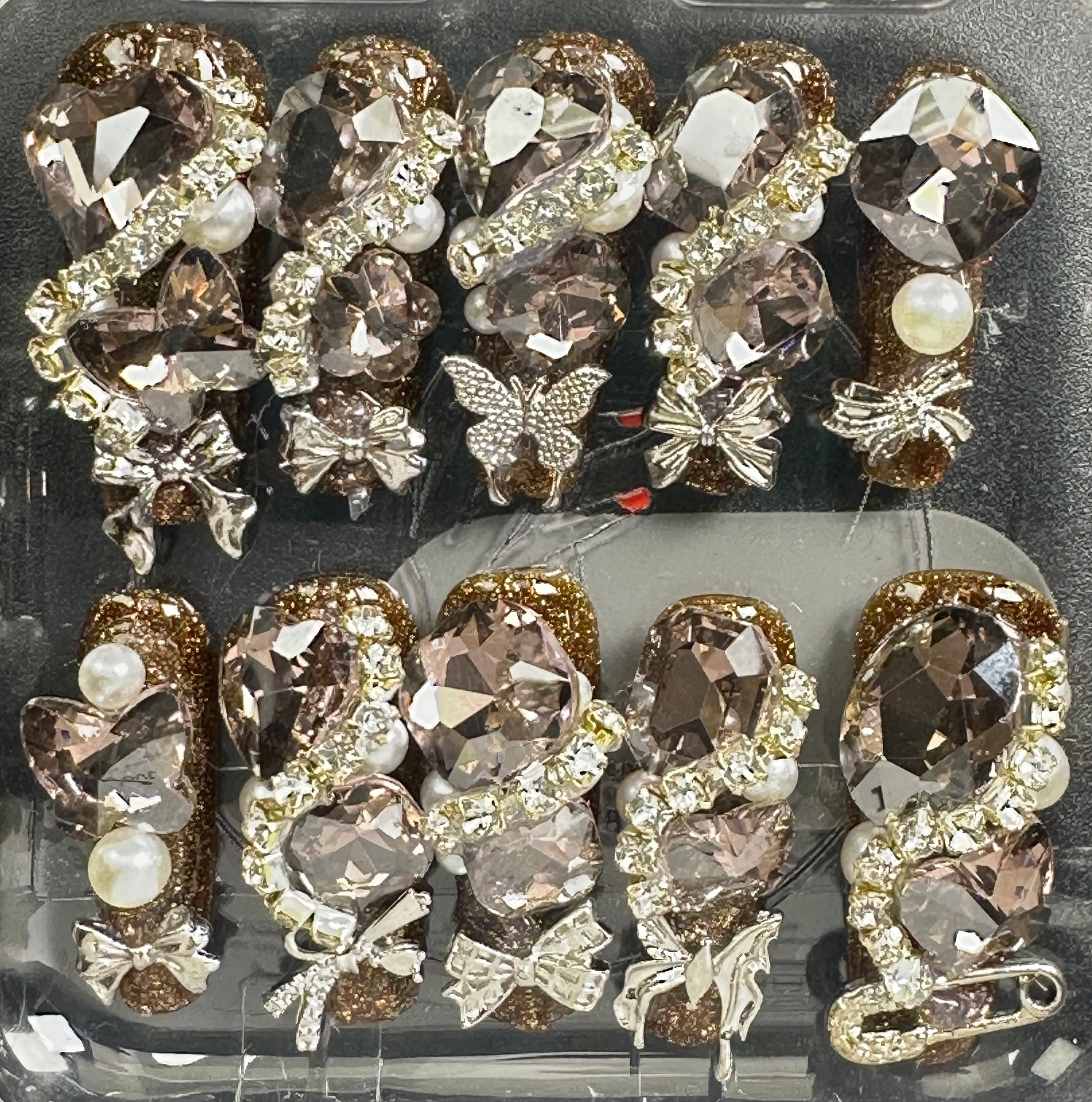 The Blossom & Glamour Collection – every set is a handcrafted floral masterpiece. Meticulous, multi-step artistry blooms on each nail, adorned with crystals and ornate details. Each design is one-of-a-kind, waiting for its only owner.