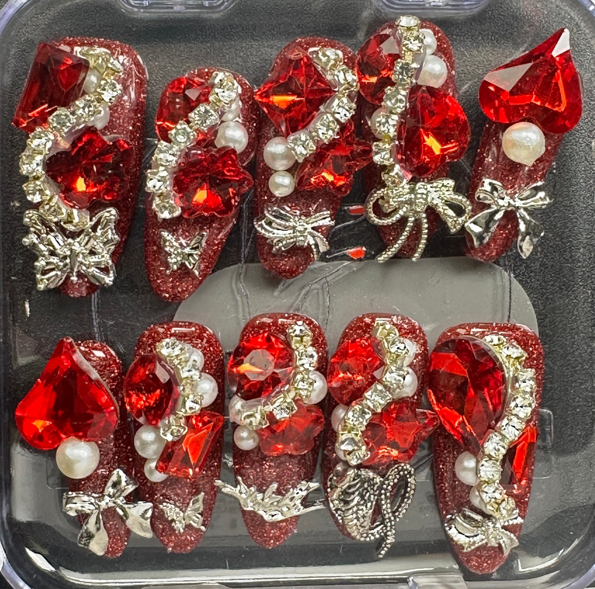 The Blossom & Glamour Collection – every set is a handcrafted floral masterpiece. Meticulous, multi-step artistry blooms on each nail, adorned with crystals and ornate details. Each design is one-of-a-kind, waiting for its only owner.