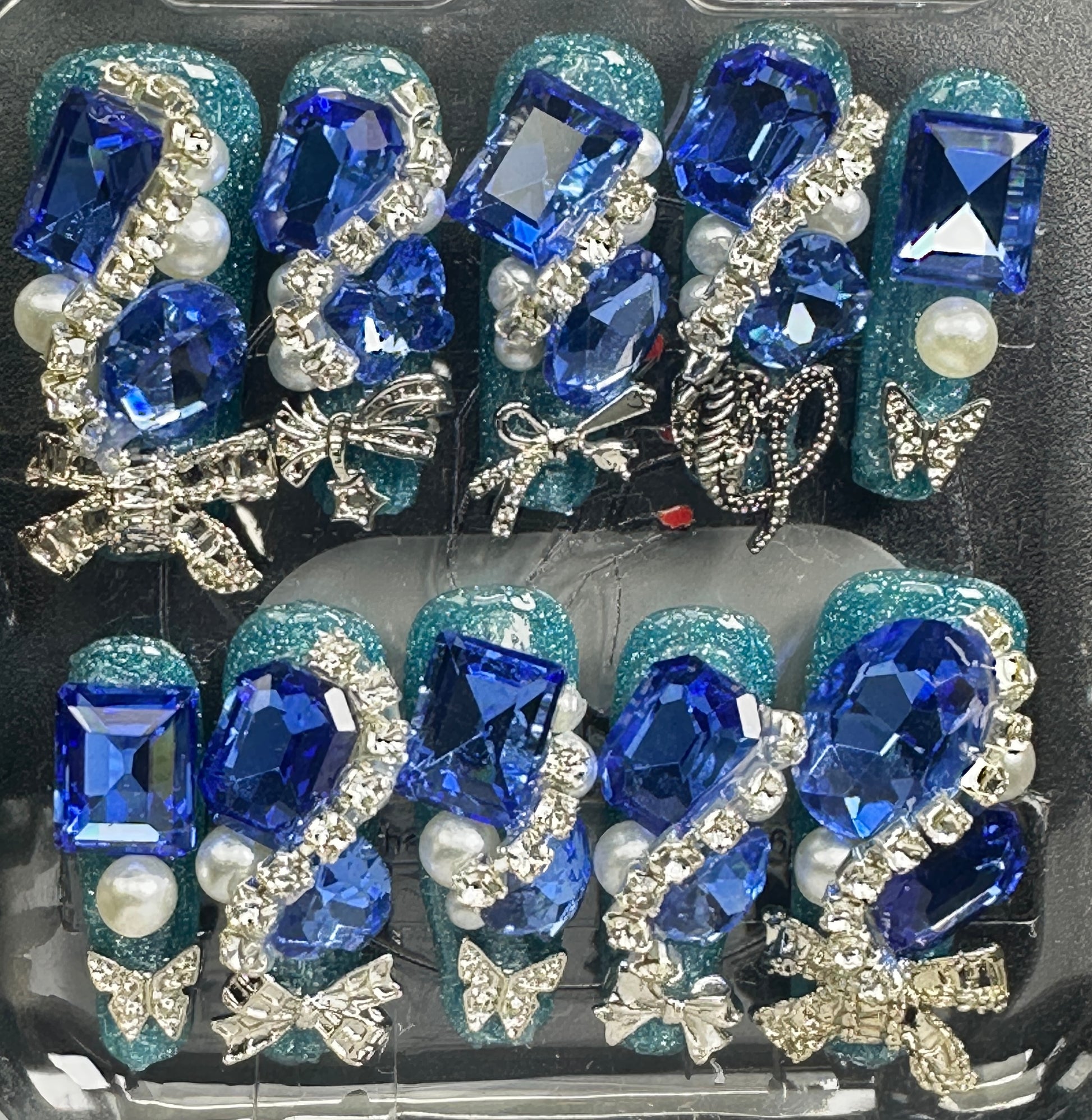 The Blossom & Glamour Collection – every set is a handcrafted floral masterpiece. Meticulous, multi-step artistry blooms on each nail, adorned with crystals and ornate details. Each design is one-of-a-kind, waiting for its only owner.