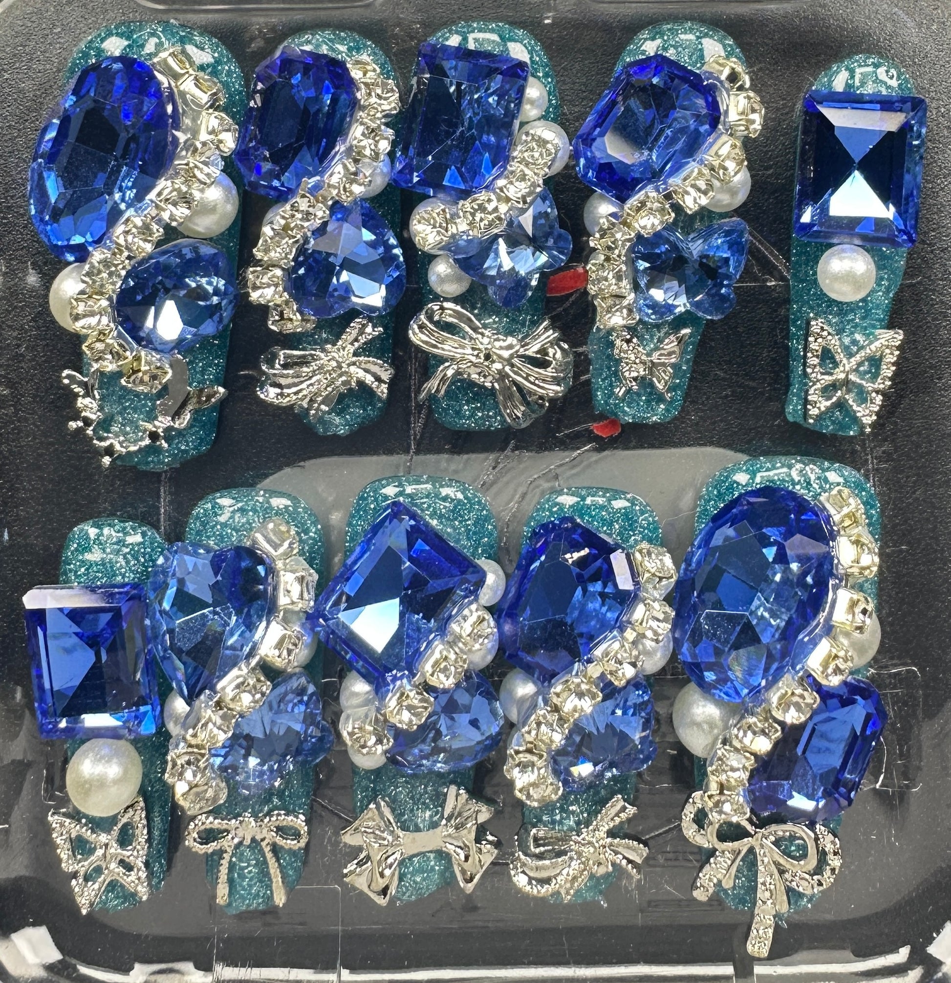 The Blossom & Glamour Collection – every set is a handcrafted floral masterpiece. Meticulous, multi-step artistry blooms on each nail, adorned with crystals and ornate details. Each design is one-of-a-kind, waiting for its only owner.
