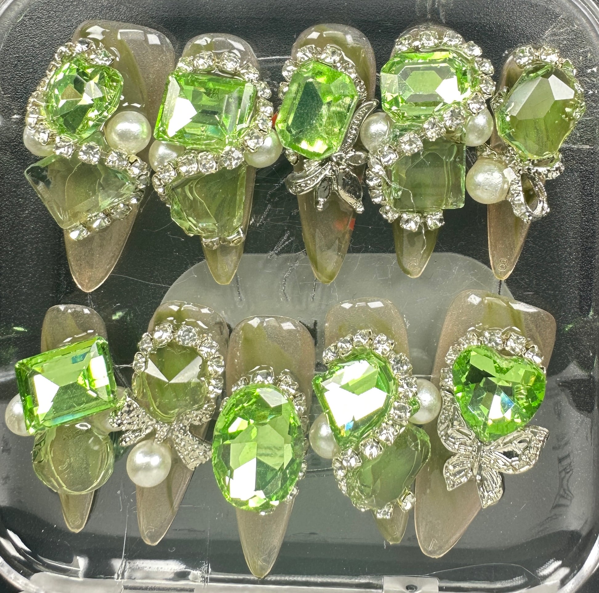 The Blossom & Glamour Collection – every set is a handcrafted floral masterpiece. Meticulous, multi-step artistry blooms on each nail, adorned with crystals and ornate details. Each design is one-of-a-kind, waiting for its only owner.