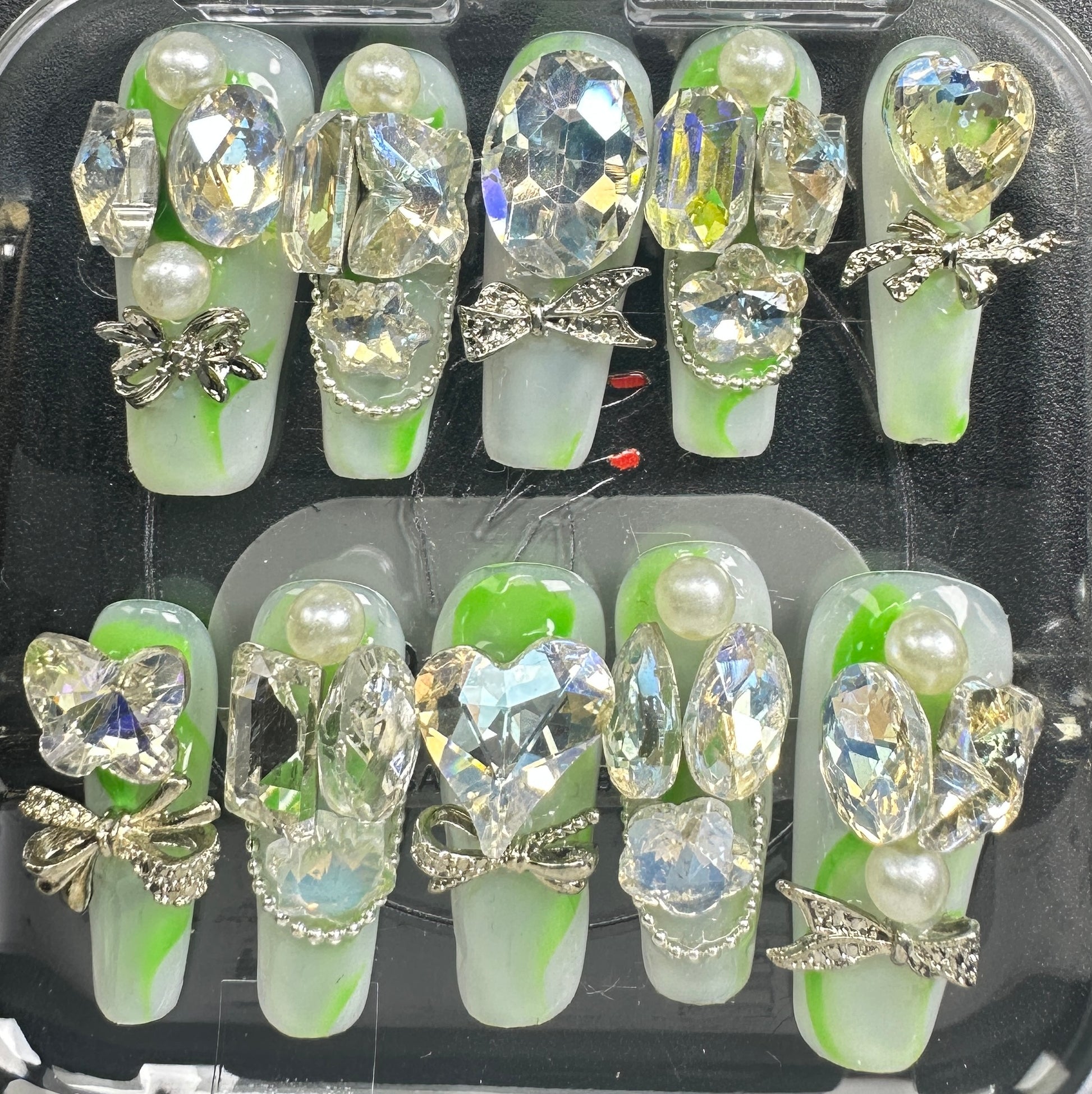The Blossom & Glamour Collection – every set is a handcrafted floral masterpiece. Meticulous, multi-step artistry blooms on each nail, adorned with crystals and ornate details. Each design is one-of-a-kind, waiting for its only owner.