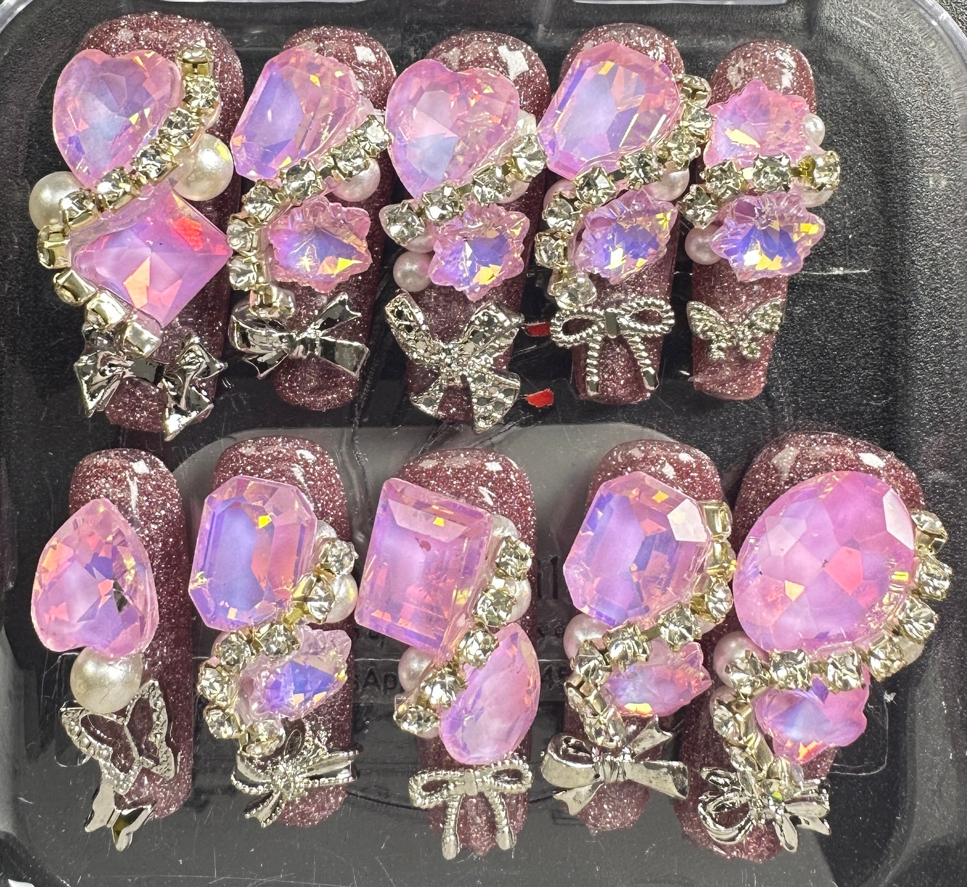 The Blossom & Glamour Collection – every set is a handcrafted floral masterpiece. Meticulous, multi-step artistry blooms on each nail, adorned with crystals and ornate details. Each design is one-of-a-kind, waiting for its only owner.