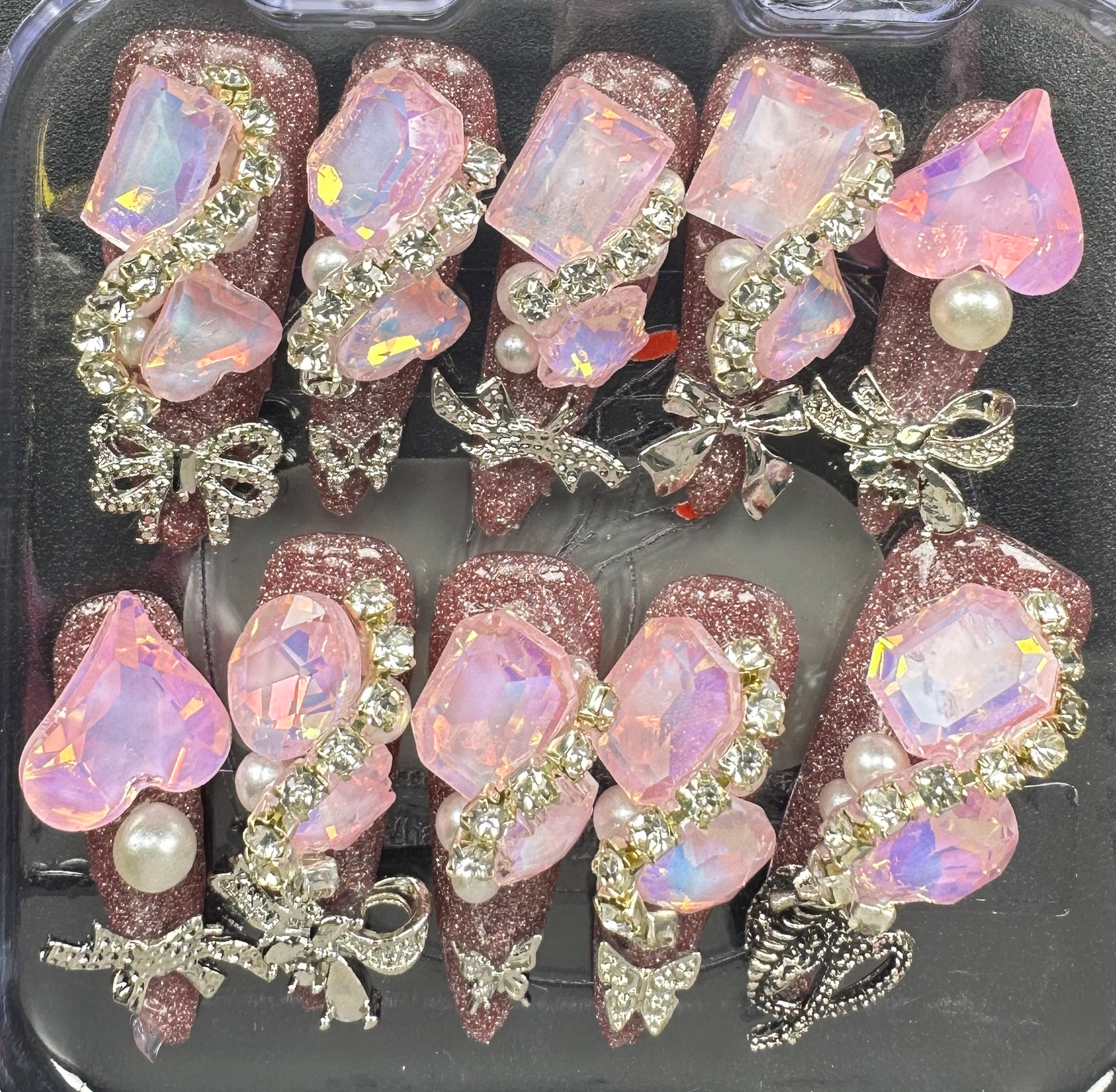The Blossom & Glamour Collection – every set is a handcrafted floral masterpiece. Meticulous, multi-step artistry blooms on each nail, adorned with crystals and ornate details. Each design is one-of-a-kind, waiting for its only owner.