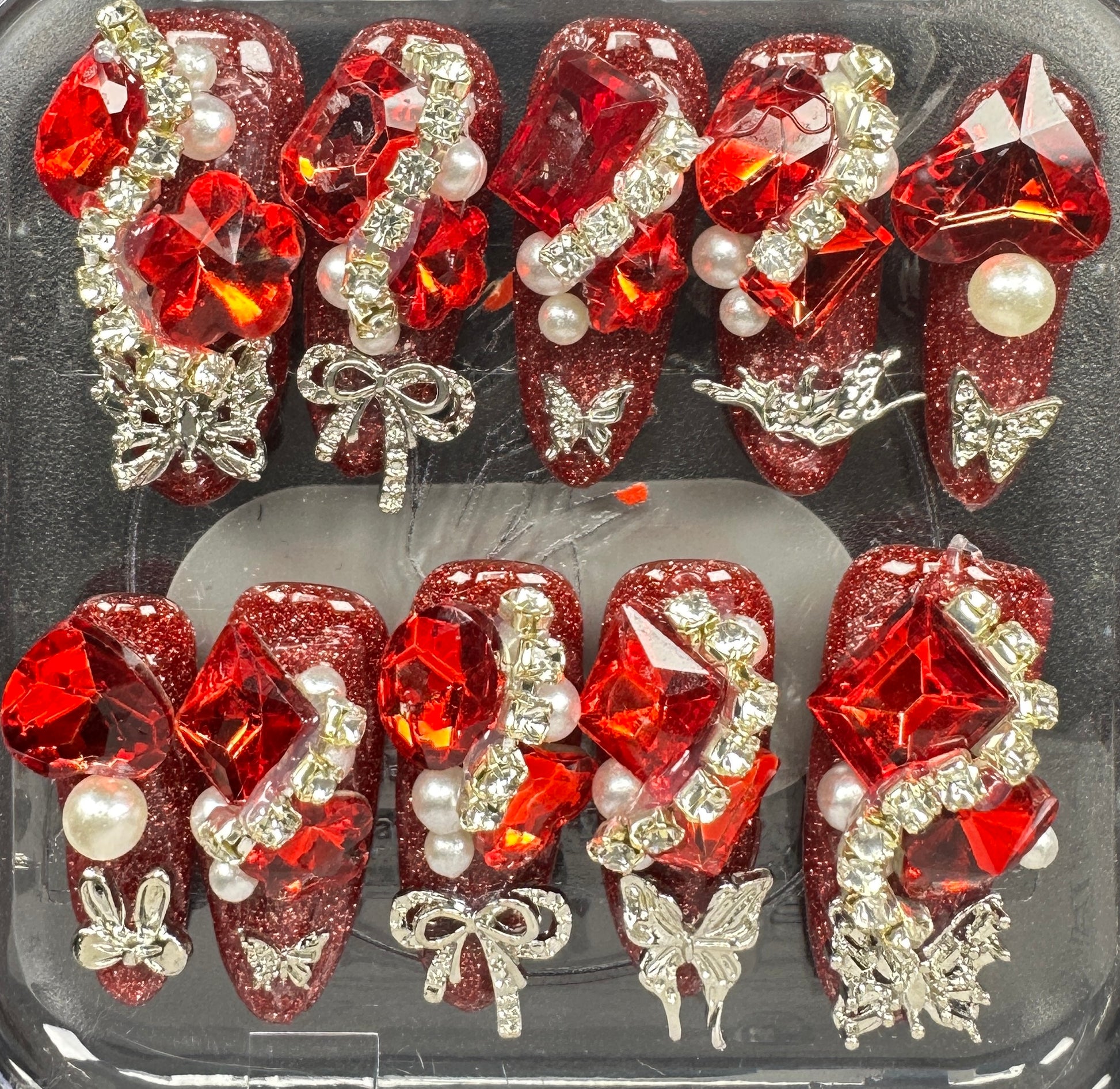 The Blossom & Glamour Collection – every set is a handcrafted floral masterpiece. Meticulous, multi-step artistry blooms on each nail, adorned with crystals and ornate details. Each design is one-of-a-kind, waiting for its only owner.