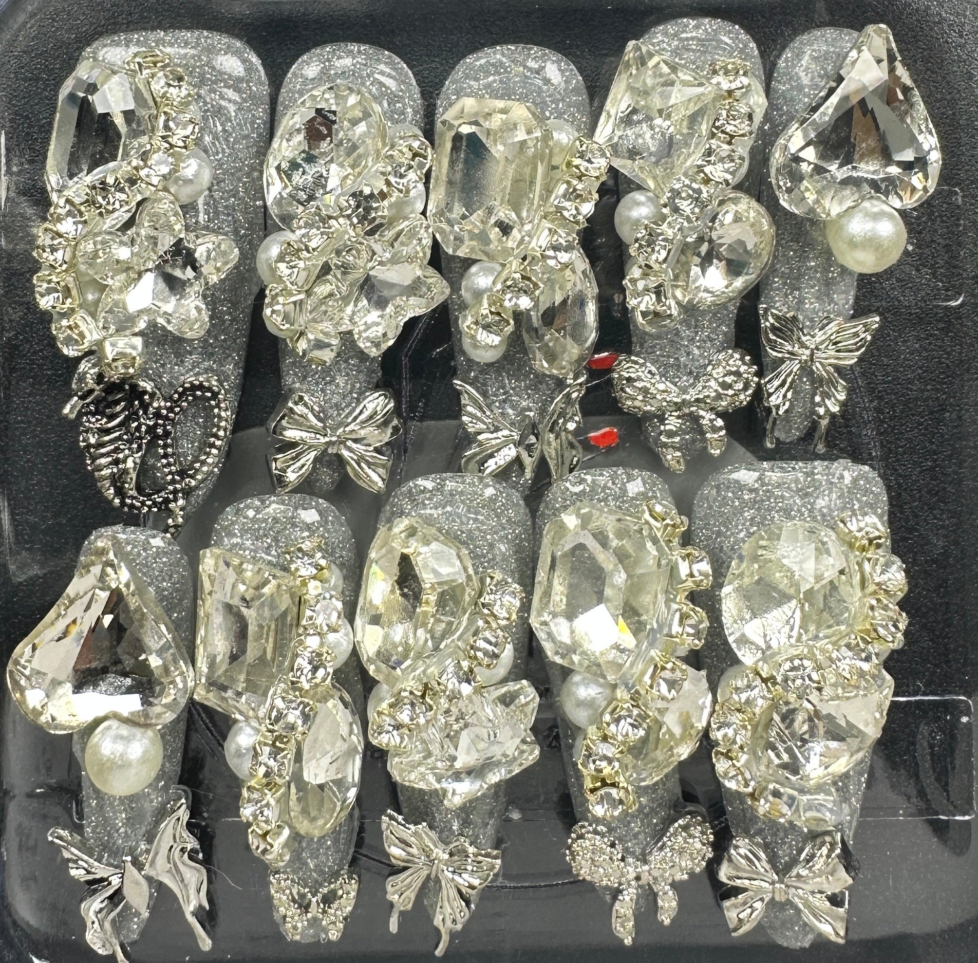 The Blossom & Glamour Collection – every set is a handcrafted floral masterpiece. Meticulous, multi-step artistry blooms on each nail, adorned with crystals and ornate details. Each design is one-of-a-kind, waiting for its only owner.