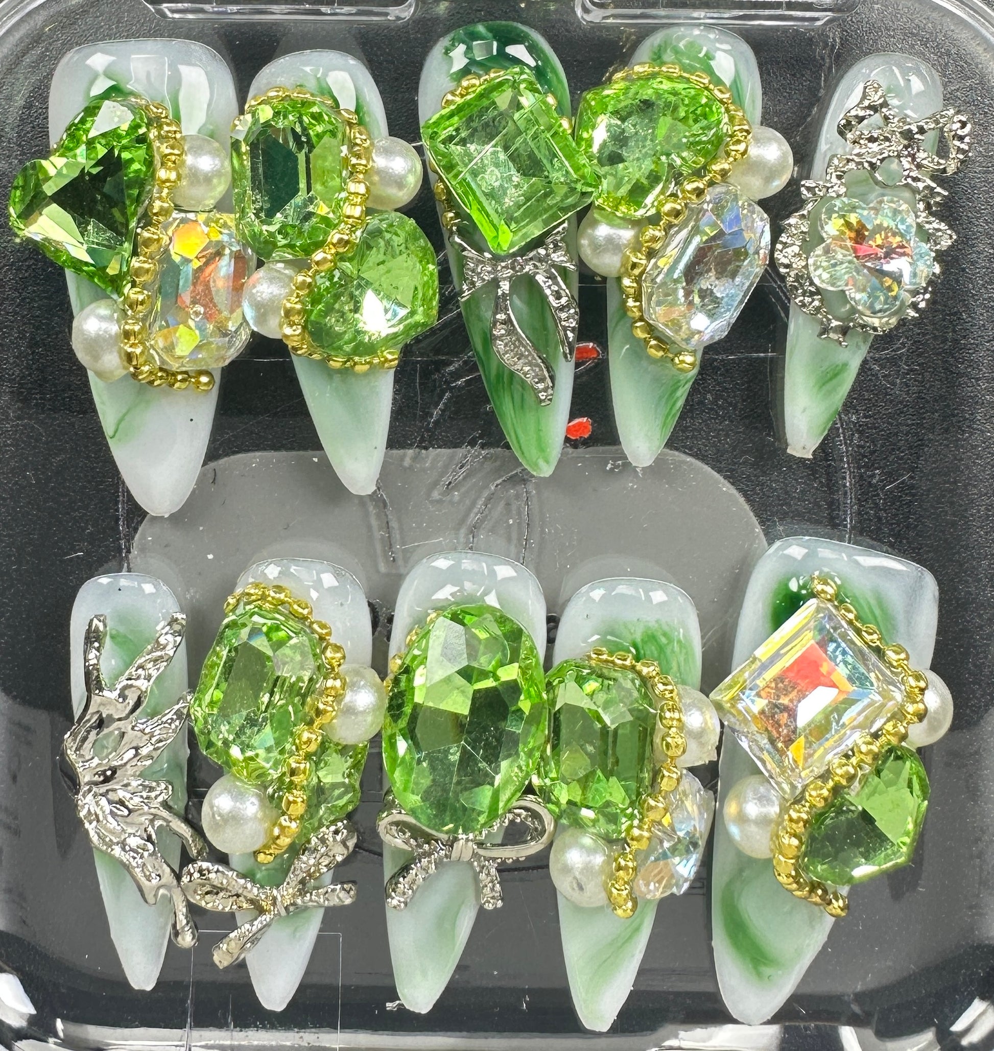 The Blossom & Glamour Collection – every set is a handcrafted floral masterpiece. Meticulous, multi-step artistry blooms on each nail, adorned with crystals and ornate details. Each design is one-of-a-kind, waiting for its only owner.