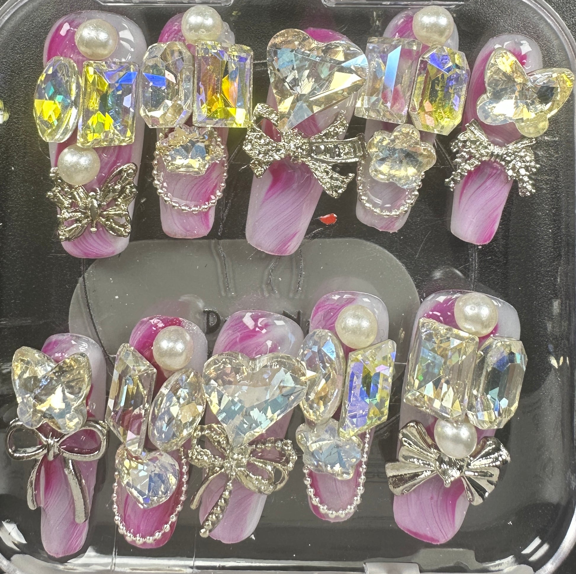 The Blossom & Glamour Collection – every set is a handcrafted floral masterpiece. Meticulous, multi-step artistry blooms on each nail, adorned with crystals and ornate details. Each design is one-of-a-kind, waiting for its only owner.