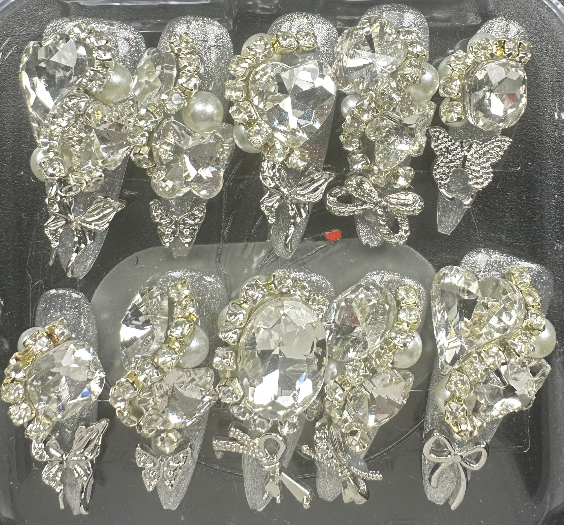 The Blossom & Glamour Collection – every set is a handcrafted floral masterpiece. Meticulous, multi-step artistry blooms on each nail, adorned with crystals and ornate details. Each design is one-of-a-kind, waiting for its only owner.