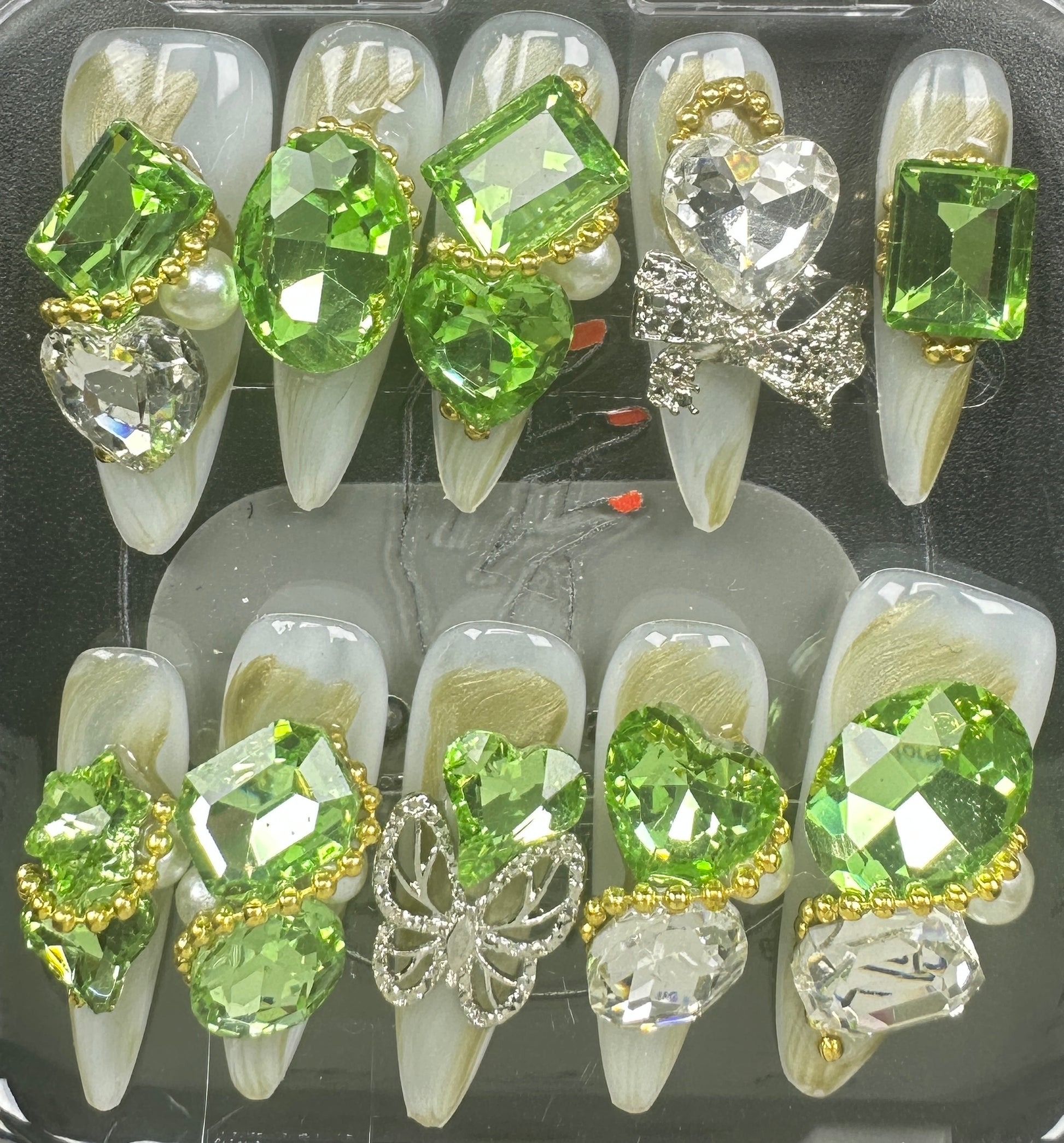 The Blossom & Glamour Collection – every set is a handcrafted floral masterpiece. Meticulous, multi-step artistry blooms on each nail, adorned with crystals and ornate details. Each design is one-of-a-kind, waiting for its only owner.