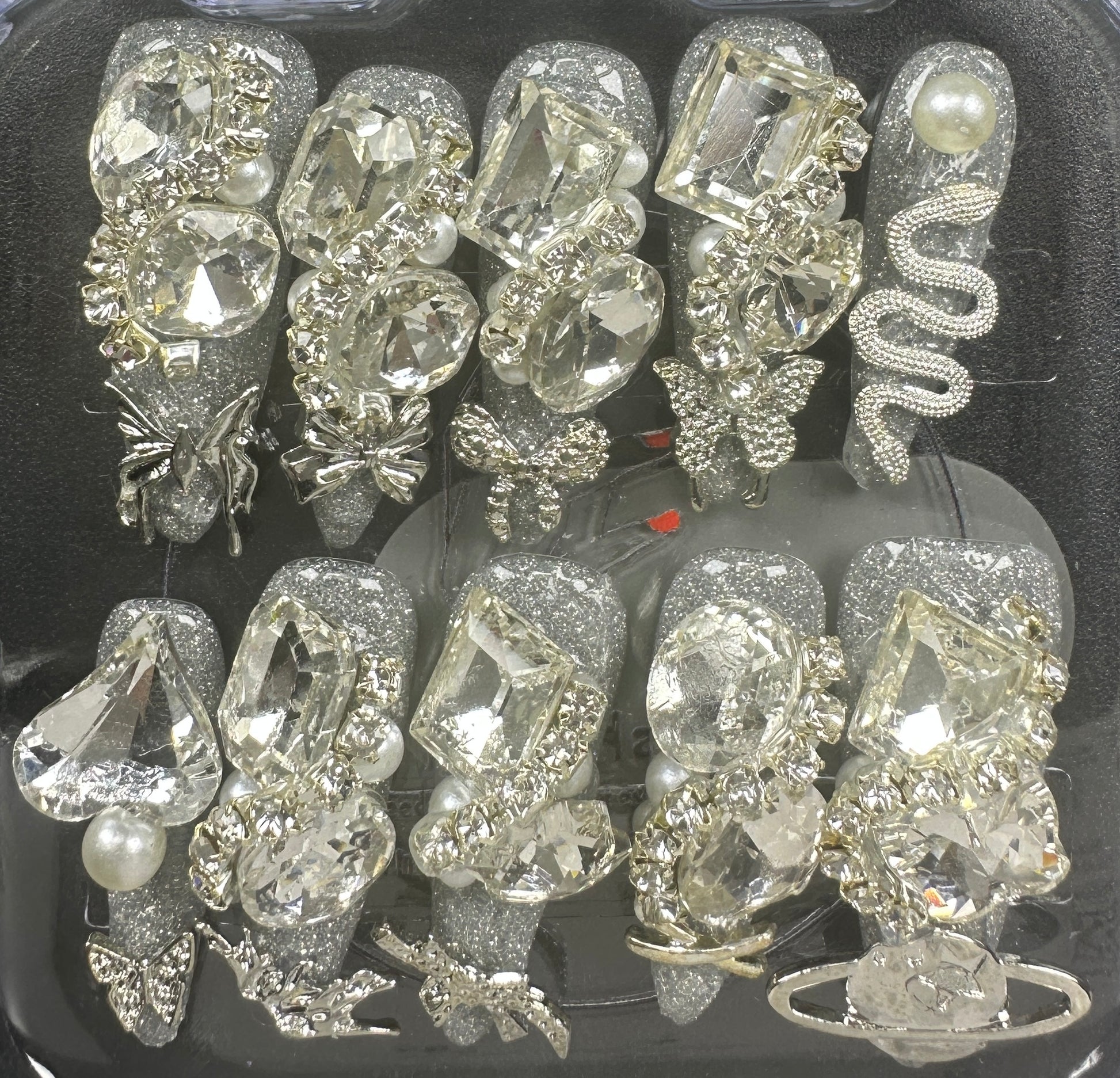 The Blossom & Glamour Collection – every set is a handcrafted floral masterpiece. Meticulous, multi-step artistry blooms on each nail, adorned with crystals and ornate details. Each design is one-of-a-kind, waiting for its only owner.