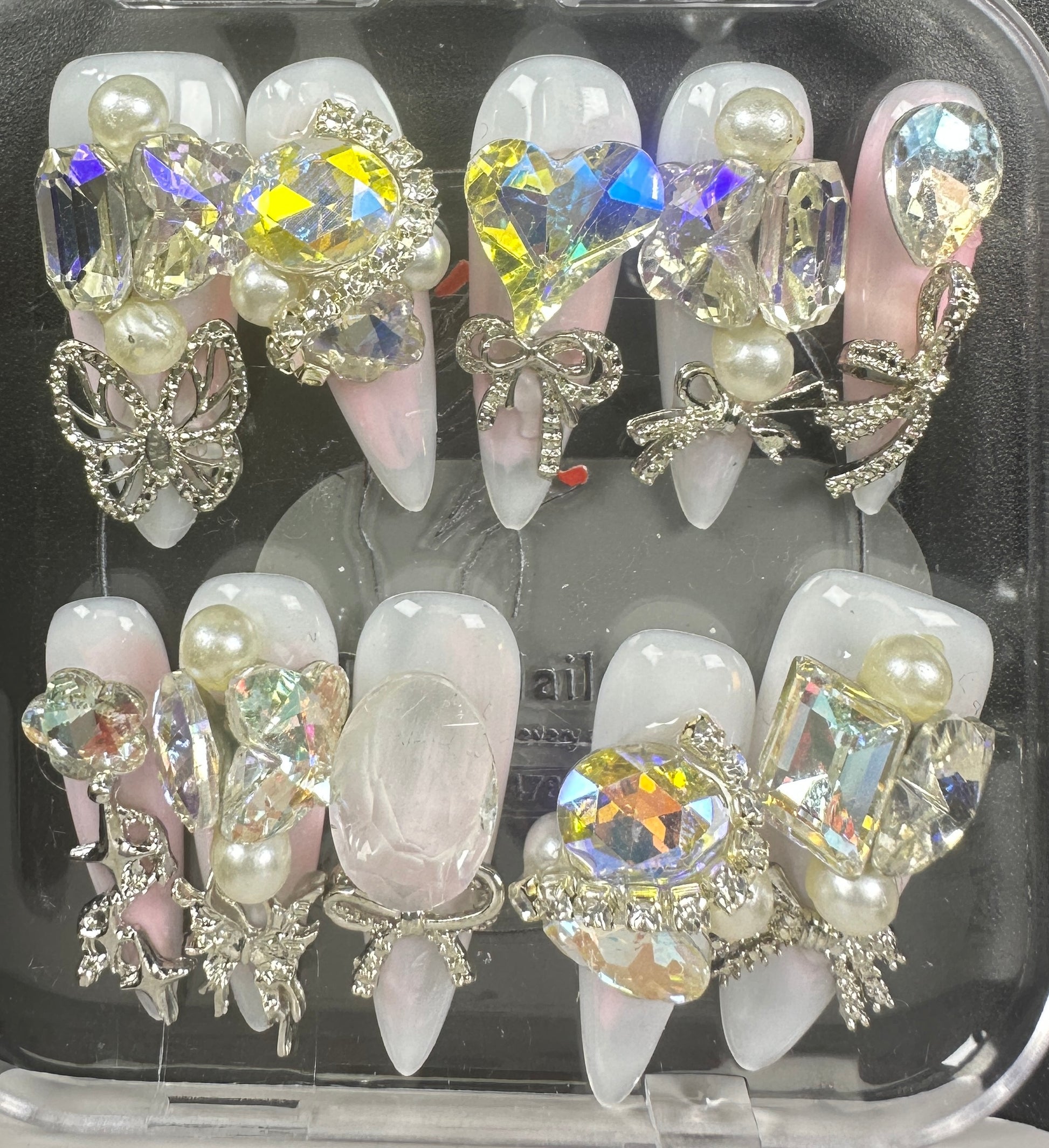 The Blossom & Glamour Collection – every set is a handcrafted floral masterpiece. Meticulous, multi-step artistry blooms on each nail, adorned with crystals and ornate details. Each design is one-of-a-kind, waiting for its only owner.