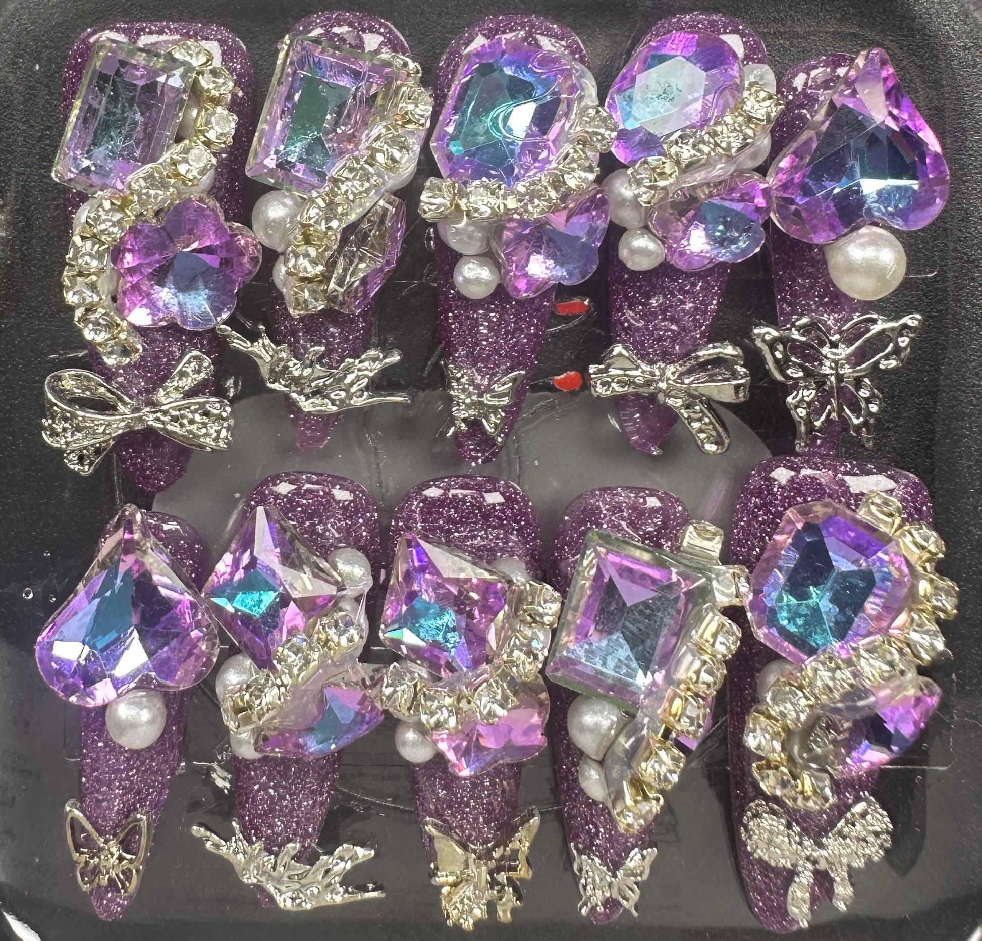 The Blossom & Glamour Collection – every set is a handcrafted floral masterpiece. Meticulous, multi-step artistry blooms on each nail, adorned with crystals and ornate details. Each design is one-of-a-kind, waiting for its only owner.