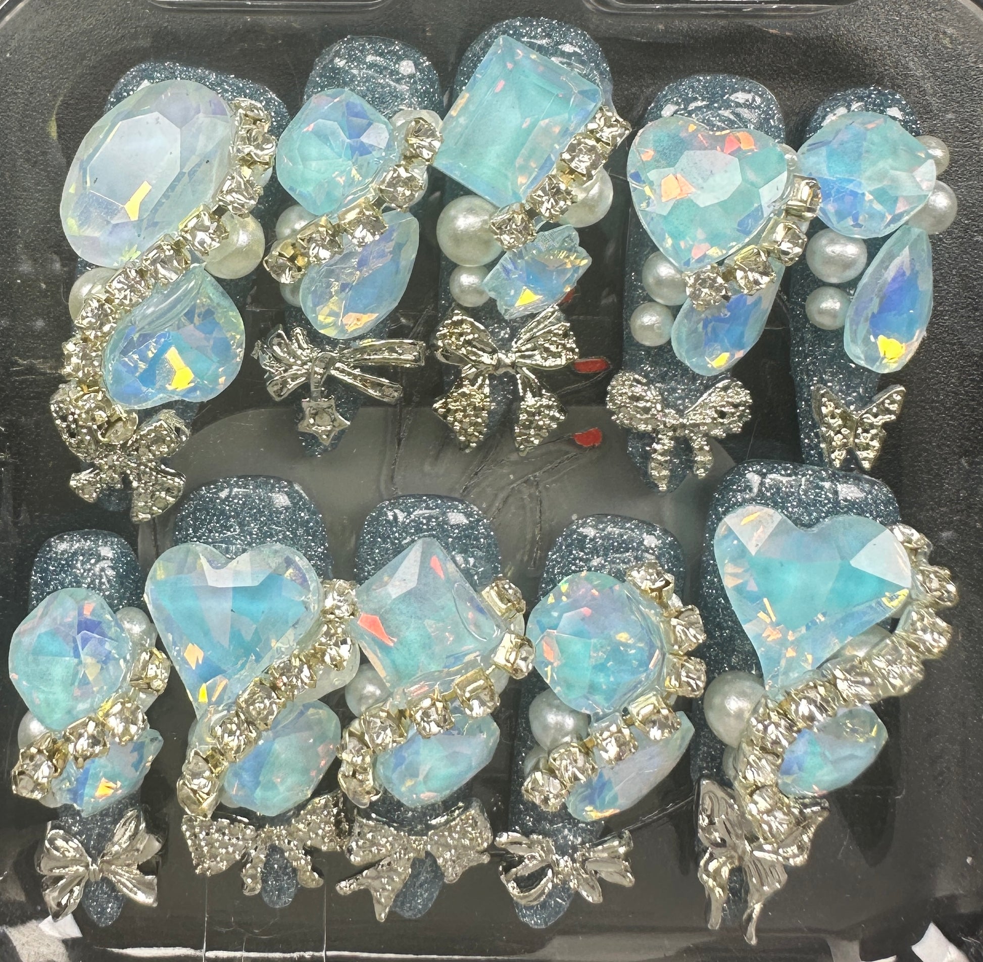 The Blossom & Glamour Collection – every set is a handcrafted floral masterpiece. Meticulous, multi-step artistry blooms on each nail, adorned with crystals and ornate details. Each design is one-of-a-kind, waiting for its only owner.