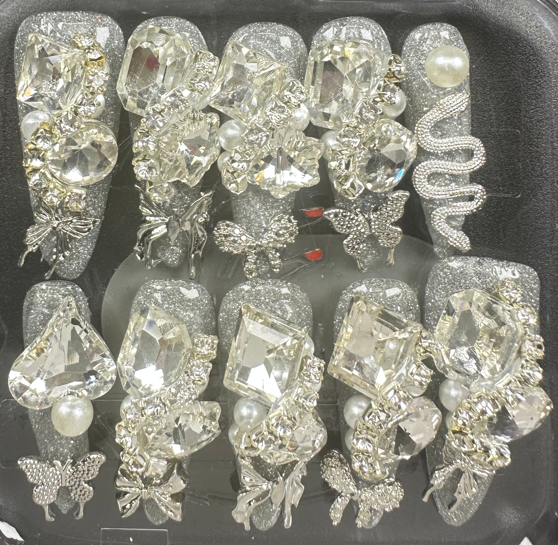 The Blossom & Glamour Collection – every set is a handcrafted floral masterpiece. Meticulous, multi-step artistry blooms on each nail, adorned with crystals and ornate details. Each design is one-of-a-kind, waiting for its only owner.