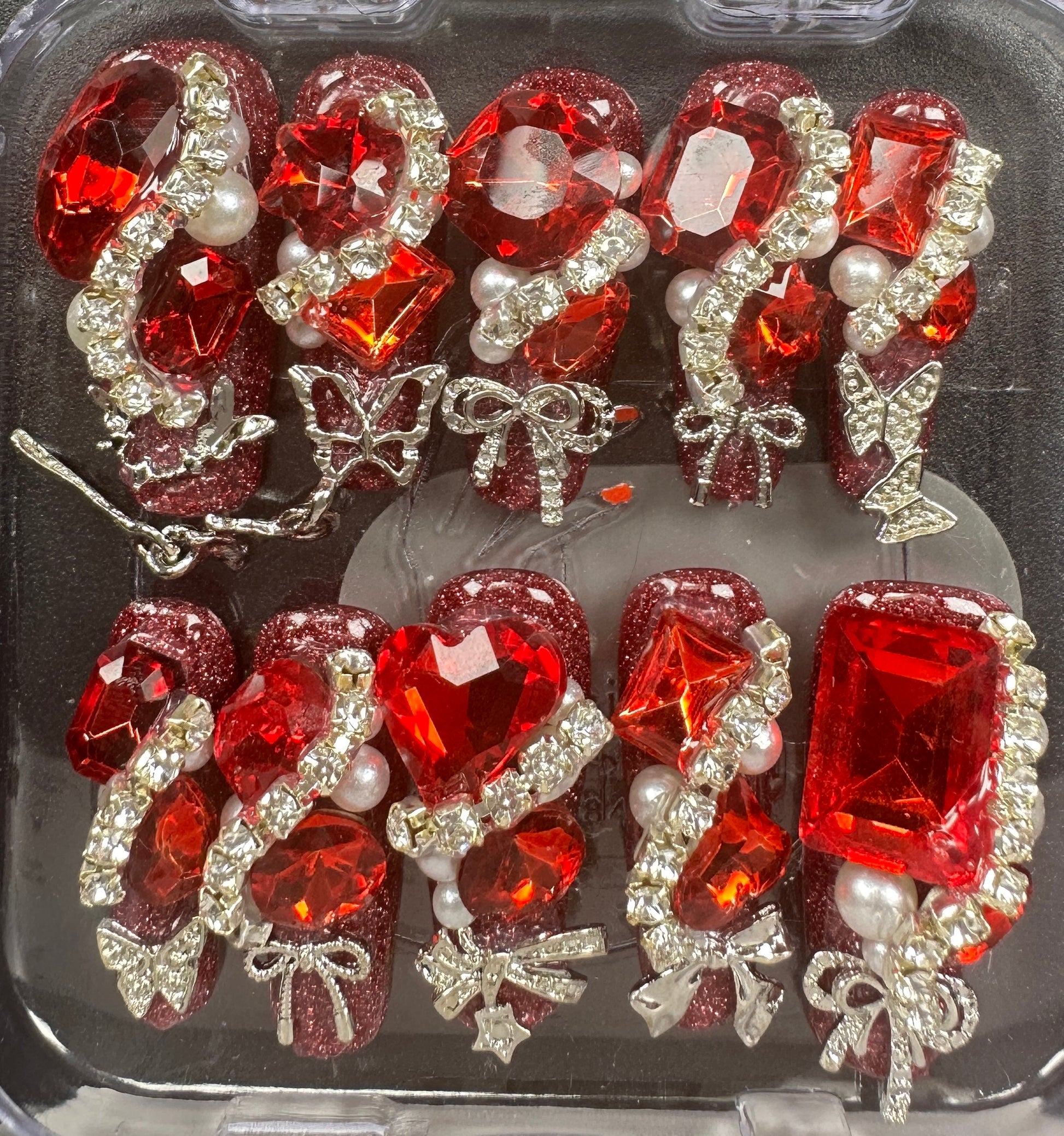 The Blossom & Glamour Collection – every set is a handcrafted floral masterpiece. Meticulous, multi-step artistry blooms on each nail, adorned with crystals and ornate details. Each design is one-of-a-kind, waiting for its only owner.