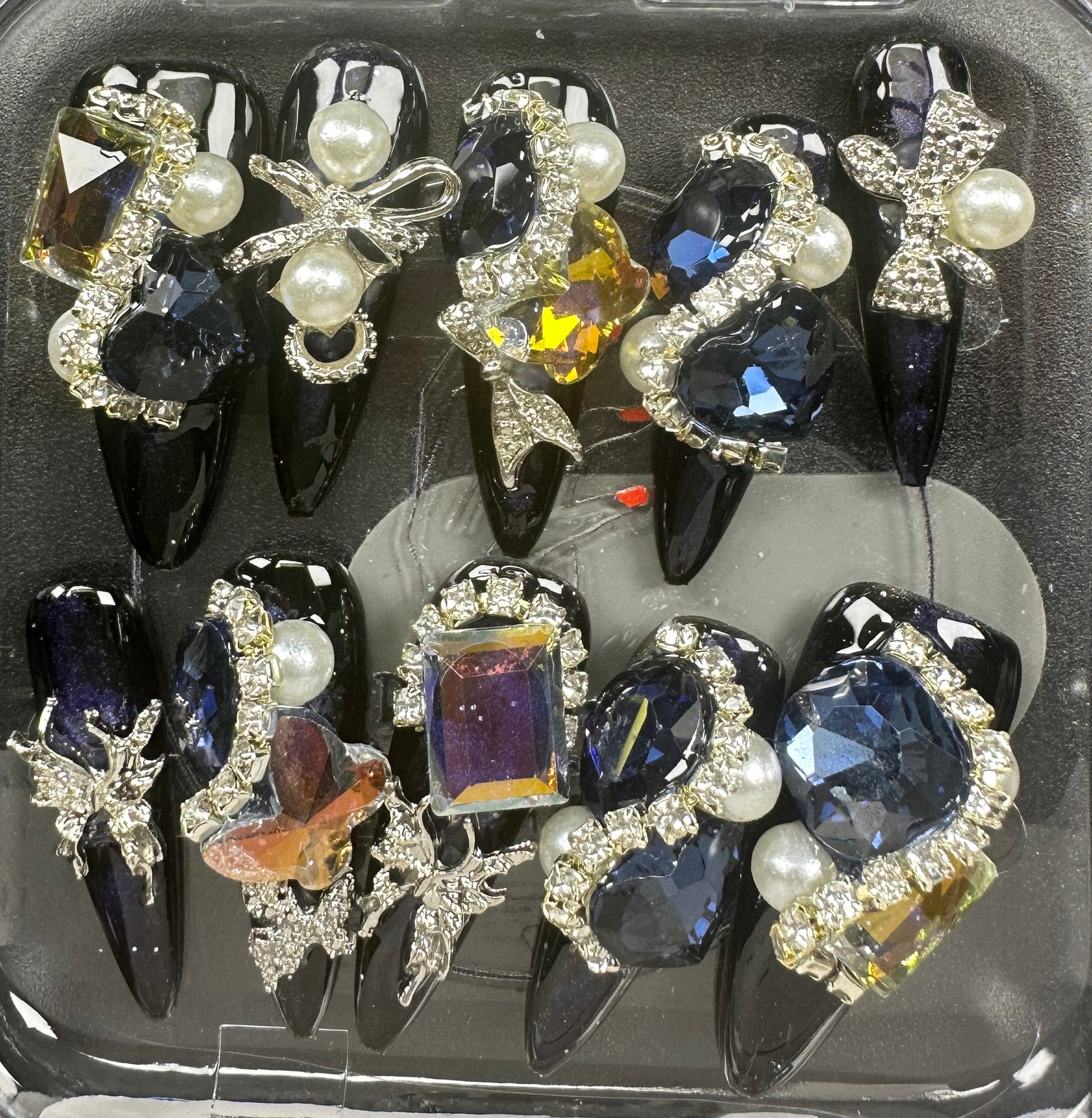 The Blossom & Glamour Collection – every set is a handcrafted floral masterpiece. Meticulous, multi-step artistry blooms on each nail, adorned with crystals and ornate details. Each design is one-of-a-kind, waiting for its only owner.