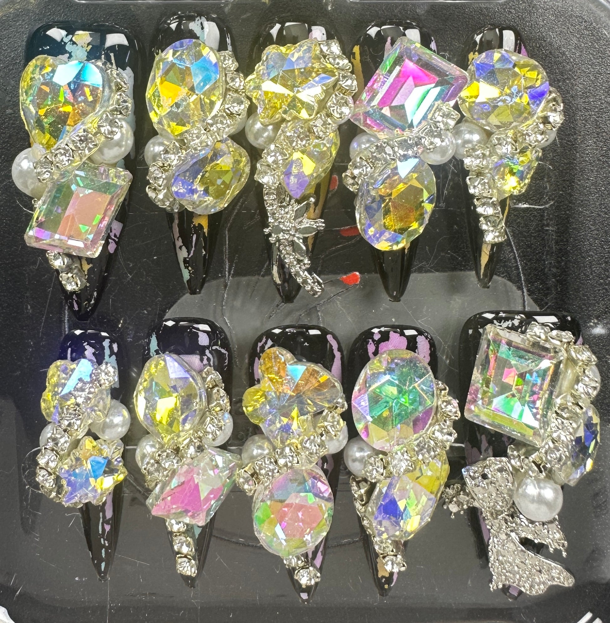 The Blossom & Glamour Collection – every set is a handcrafted floral masterpiece. Meticulous, multi-step artistry blooms on each nail, adorned with crystals and ornate details. Each design is one-of-a-kind, waiting for its only owner.