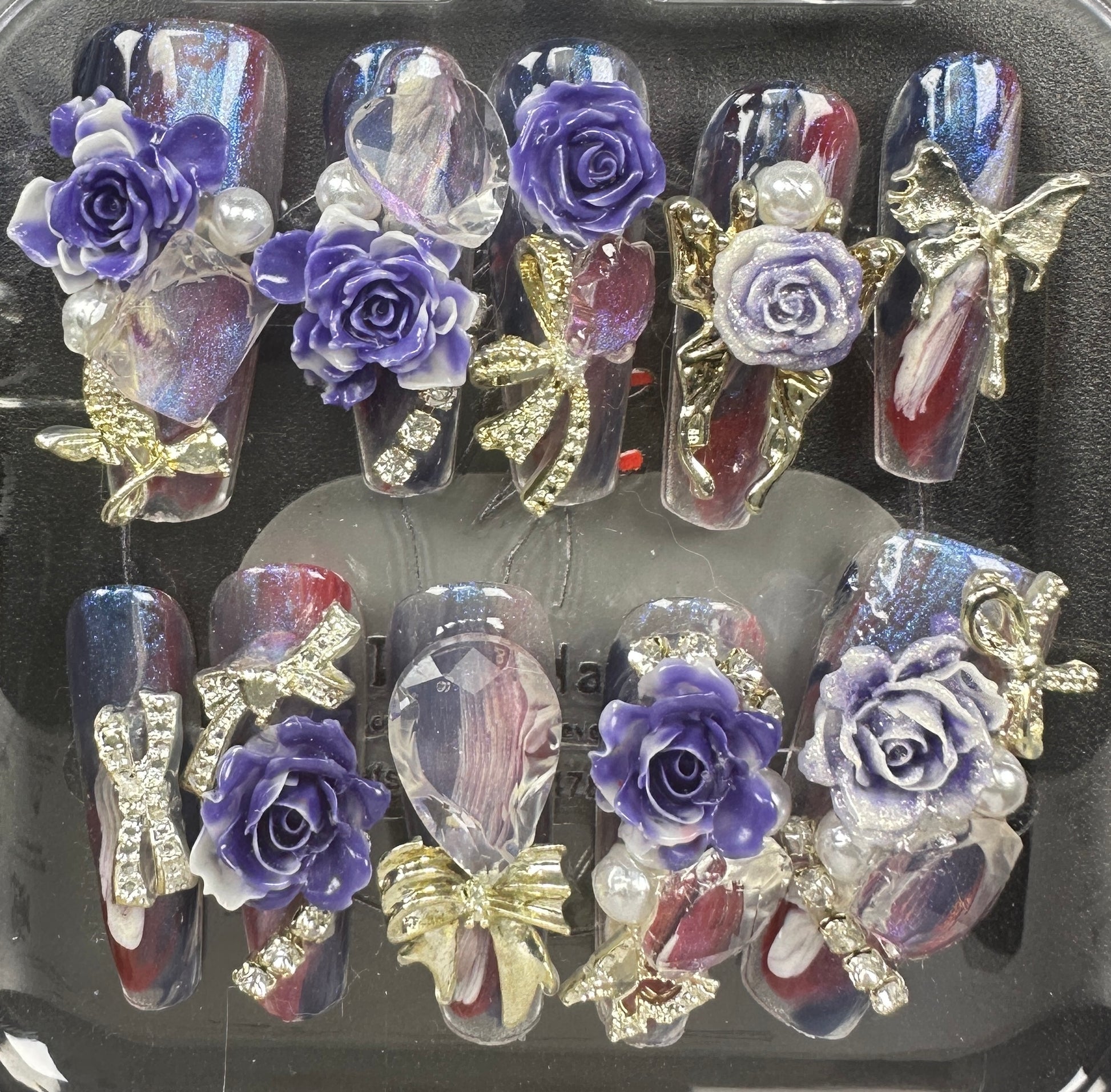 The Blossom & Glamour Collection – every set is a handcrafted floral masterpiece. Meticulous, multi-step artistry blooms on each nail, adorned with crystals and ornate details. Each design is one-of-a-kind, waiting for its only owner.
