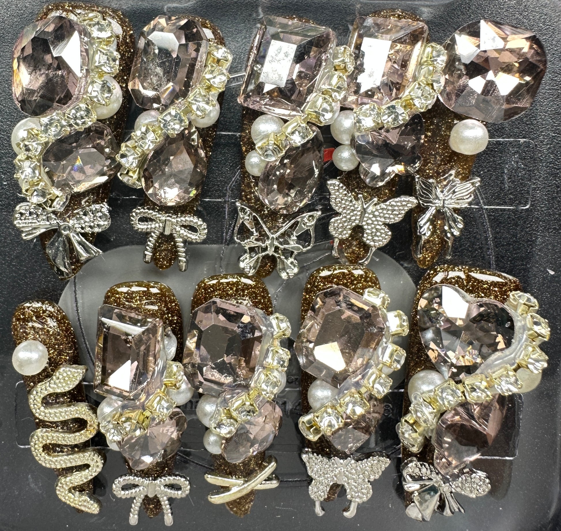 The Blossom & Glamour Collection – every set is a handcrafted floral masterpiece. Meticulous, multi-step artistry blooms on each nail, adorned with crystals and ornate details. Each design is one-of-a-kind, waiting for its only owner.