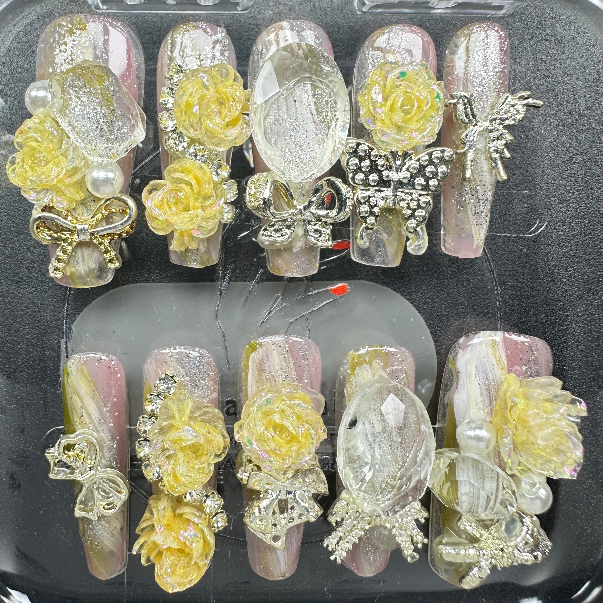 The Blossom & Glamour Collection – every set is a handcrafted floral masterpiece. Meticulous, multi-step artistry blooms on each nail, adorned with crystals and ornate details. Each design is one-of-a-kind, waiting for its only owner.