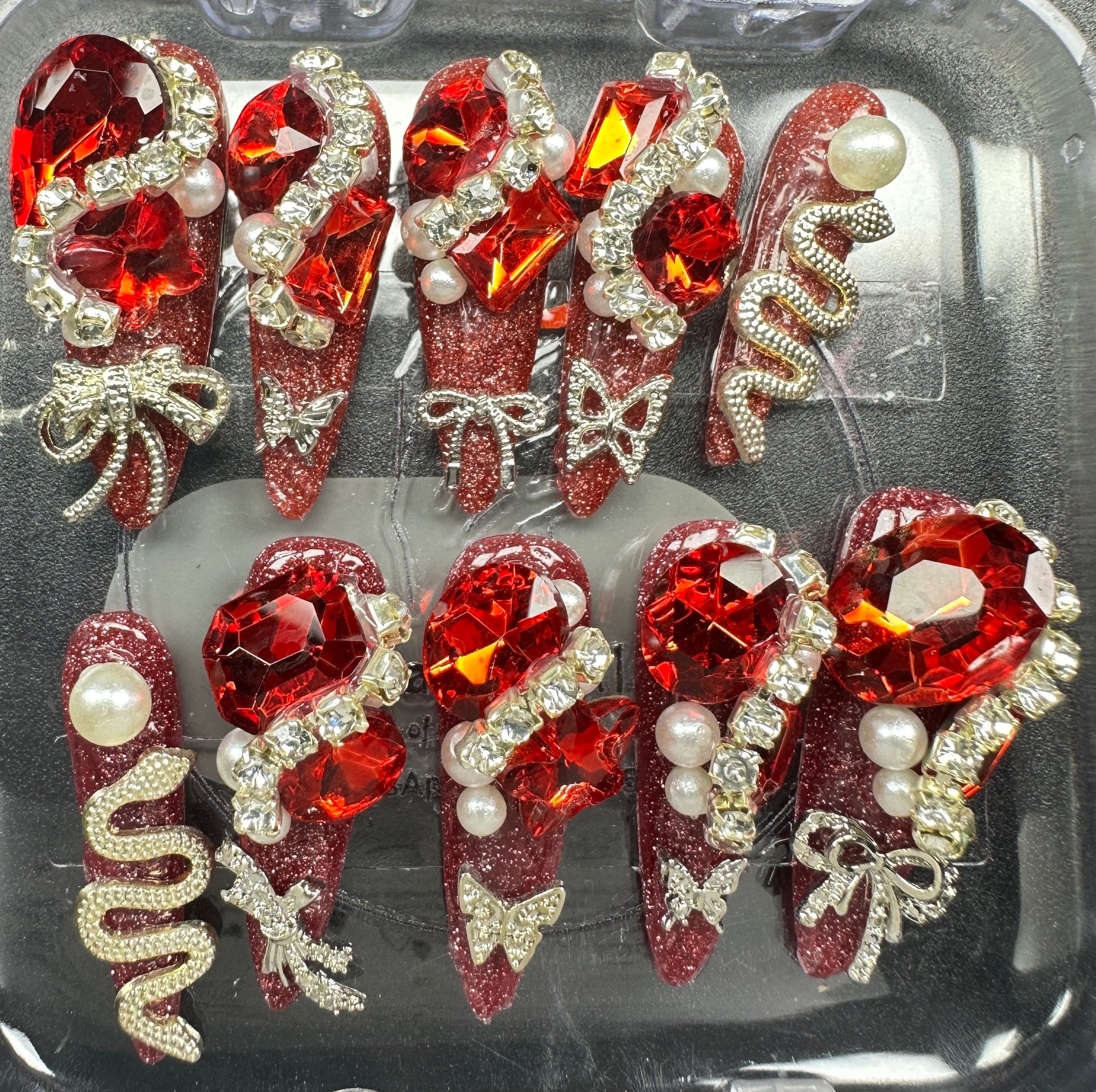 The Blossom & Glamour Collection – every set is a handcrafted floral masterpiece. Meticulous, multi-step artistry blooms on each nail, adorned with crystals and ornate details. Each design is one-of-a-kind, waiting for its only owner.