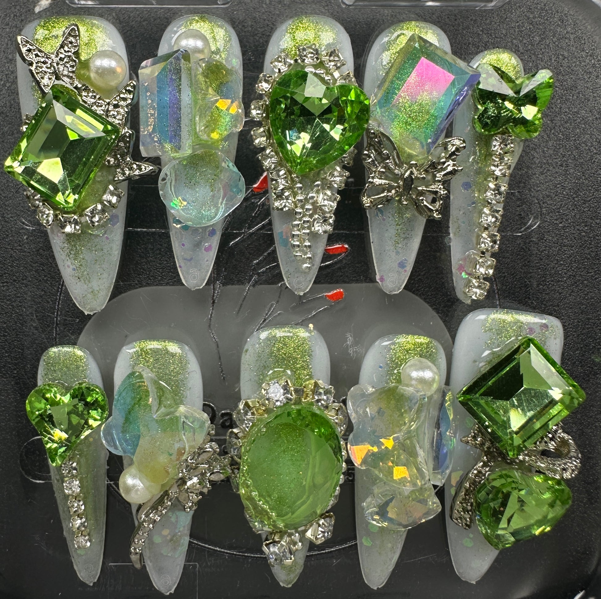 The Blossom & Glamour Collection – every set is a handcrafted floral masterpiece. Meticulous, multi-step artistry blooms on each nail, adorned with crystals and ornate details. Each design is one-of-a-kind, waiting for its only owner.