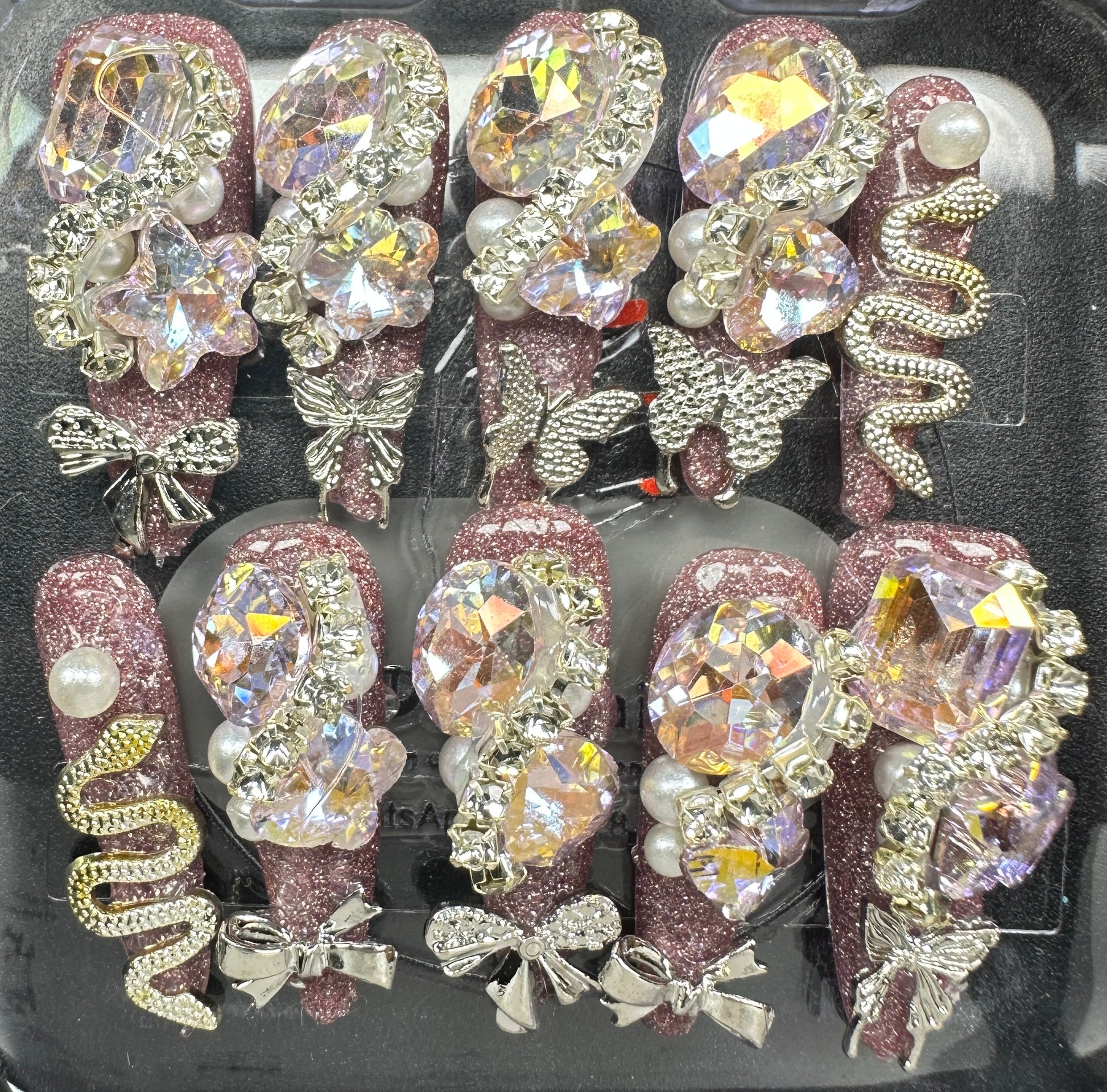The Blossom & Glamour Collection – every set is a handcrafted floral masterpiece. Meticulous, multi-step artistry blooms on each nail, adorned with crystals and ornate details. Each design is one-of-a-kind, waiting for its only owner.