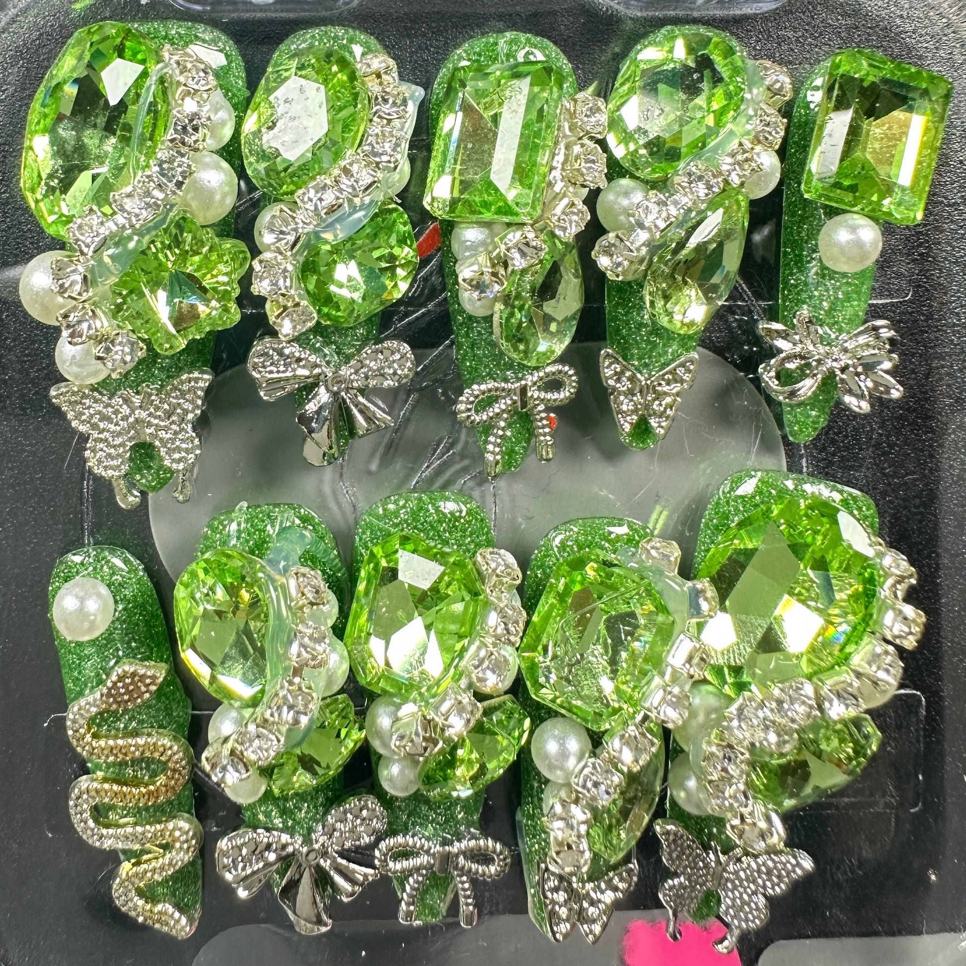 The Blossom & Glamour Collection – every set is a handcrafted floral masterpiece. Meticulous, multi-step artistry blooms on each nail, adorned with crystals and ornate details. Each design is one-of-a-kind, waiting for its only owner.