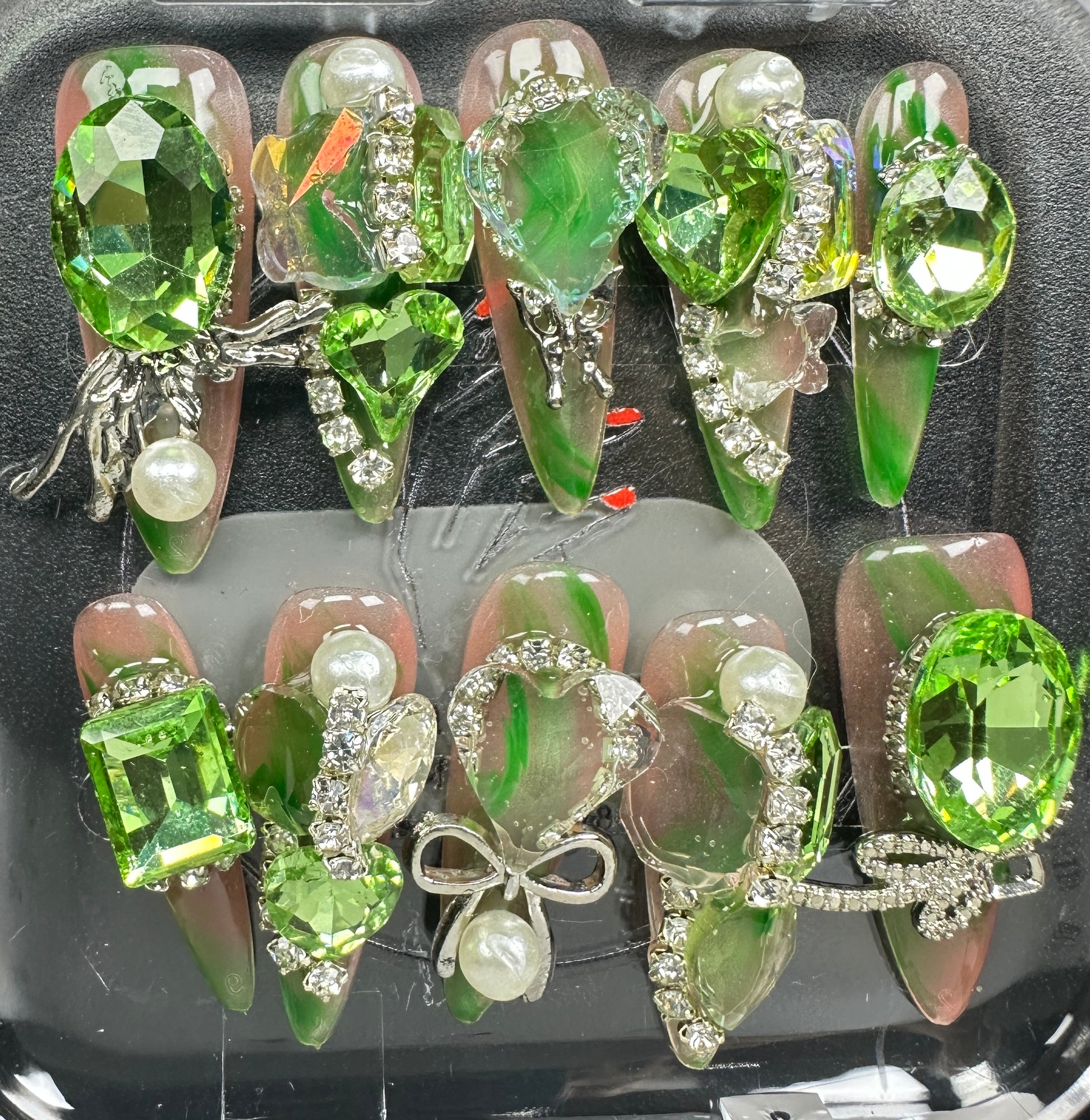 The Blossom & Glamour Collection – every set is a handcrafted floral masterpiece. Meticulous, multi-step artistry blooms on each nail, adorned with crystals and ornate details. Each design is one-of-a-kind, waiting for its only owner.