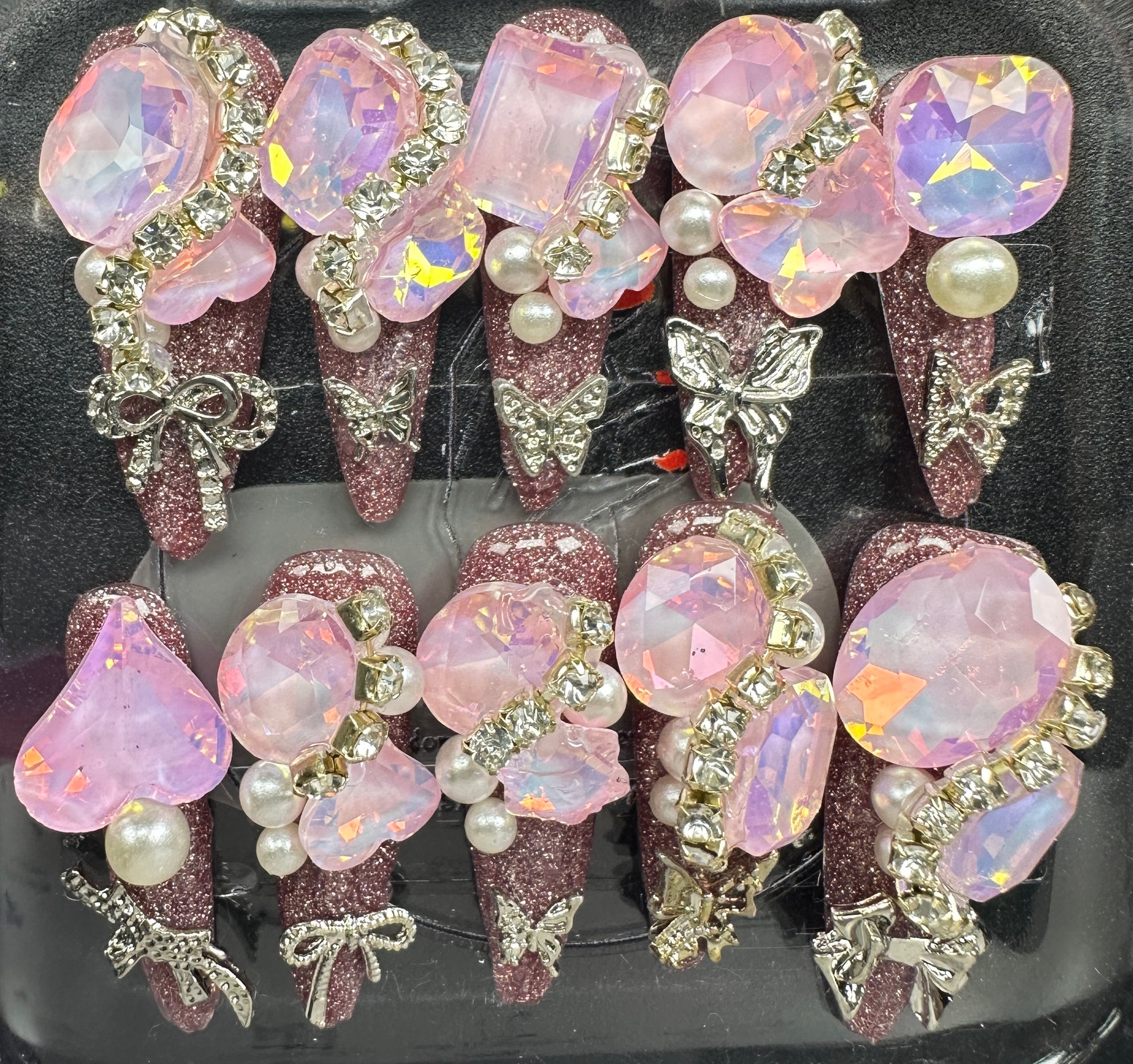The Blossom & Glamour Collection – every set is a handcrafted floral masterpiece. Meticulous, multi-step artistry blooms on each nail, adorned with crystals and ornate details. Each design is one-of-a-kind, waiting for its only owner.