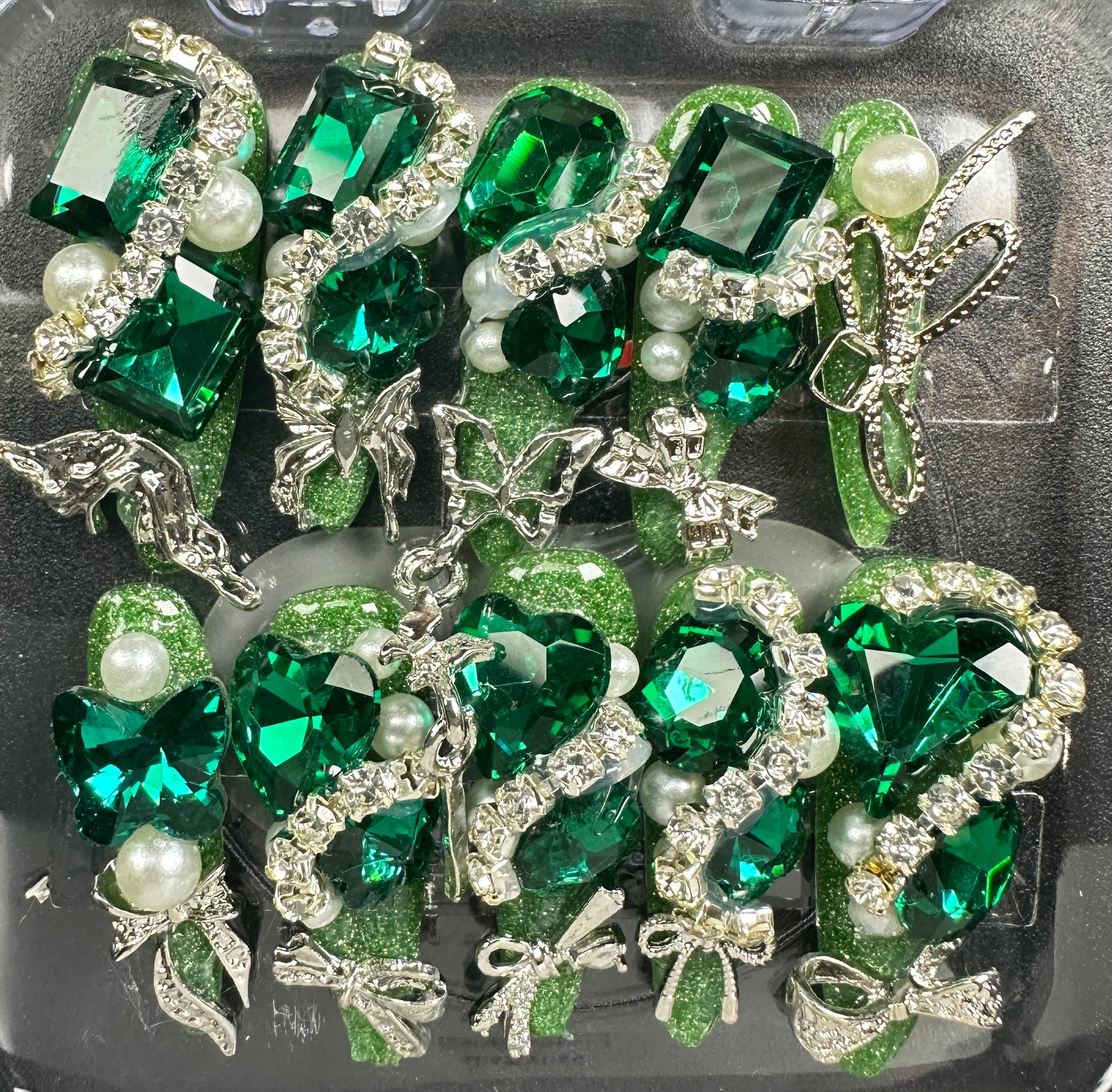 The Blossom & Glamour Collection – every set is a handcrafted floral masterpiece. Meticulous, multi-step artistry blooms on each nail, adorned with crystals and ornate details. Each design is one-of-a-kind, waiting for its only owner.
