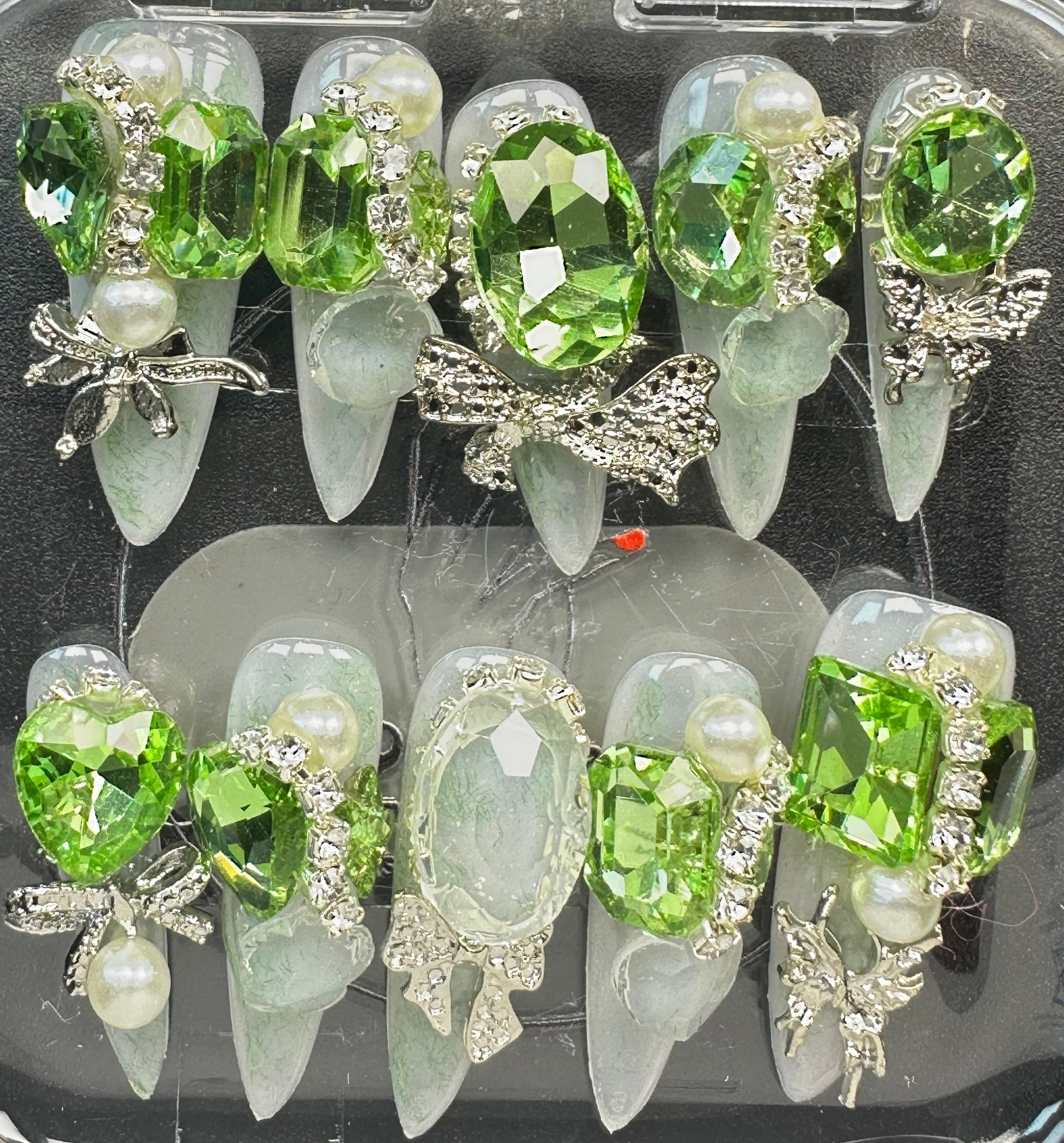 The Blossom & Glamour Collection – every set is a handcrafted floral masterpiece. Meticulous, multi-step artistry blooms on each nail, adorned with crystals and ornate details. Each design is one-of-a-kind, waiting for its only owner.