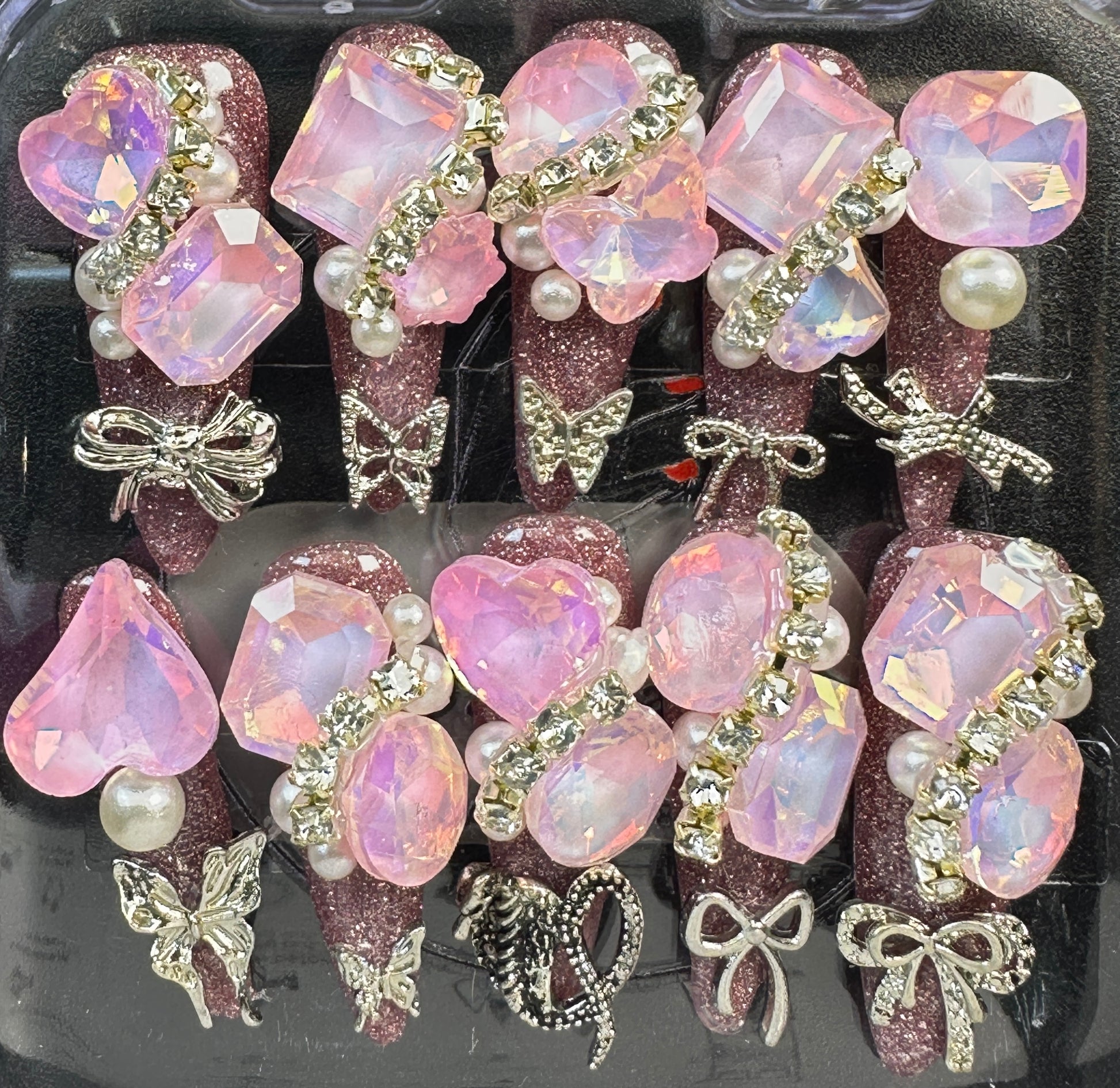 The Blossom & Glamour Collection – every set is a handcrafted floral masterpiece. Meticulous, multi-step artistry blooms on each nail, adorned with crystals and ornate details. Each design is one-of-a-kind, waiting for its only owner.