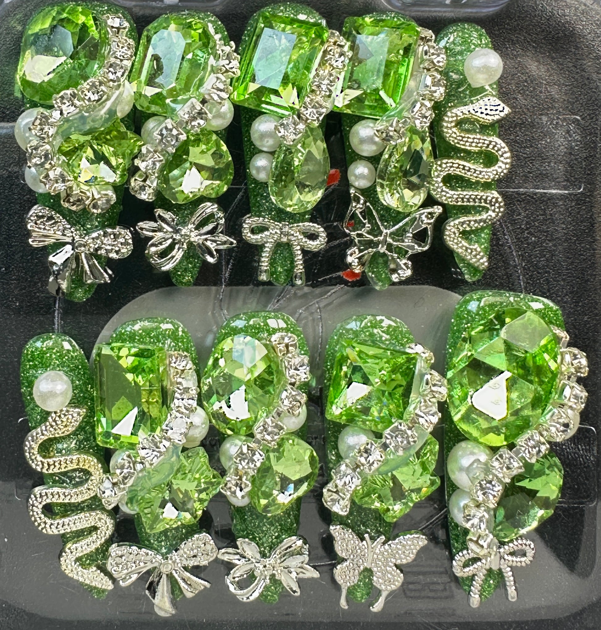 The Blossom & Glamour Collection – every set is a handcrafted floral masterpiece. Meticulous, multi-step artistry blooms on each nail, adorned with crystals and ornate details. Each design is one-of-a-kind, waiting for its only owner.