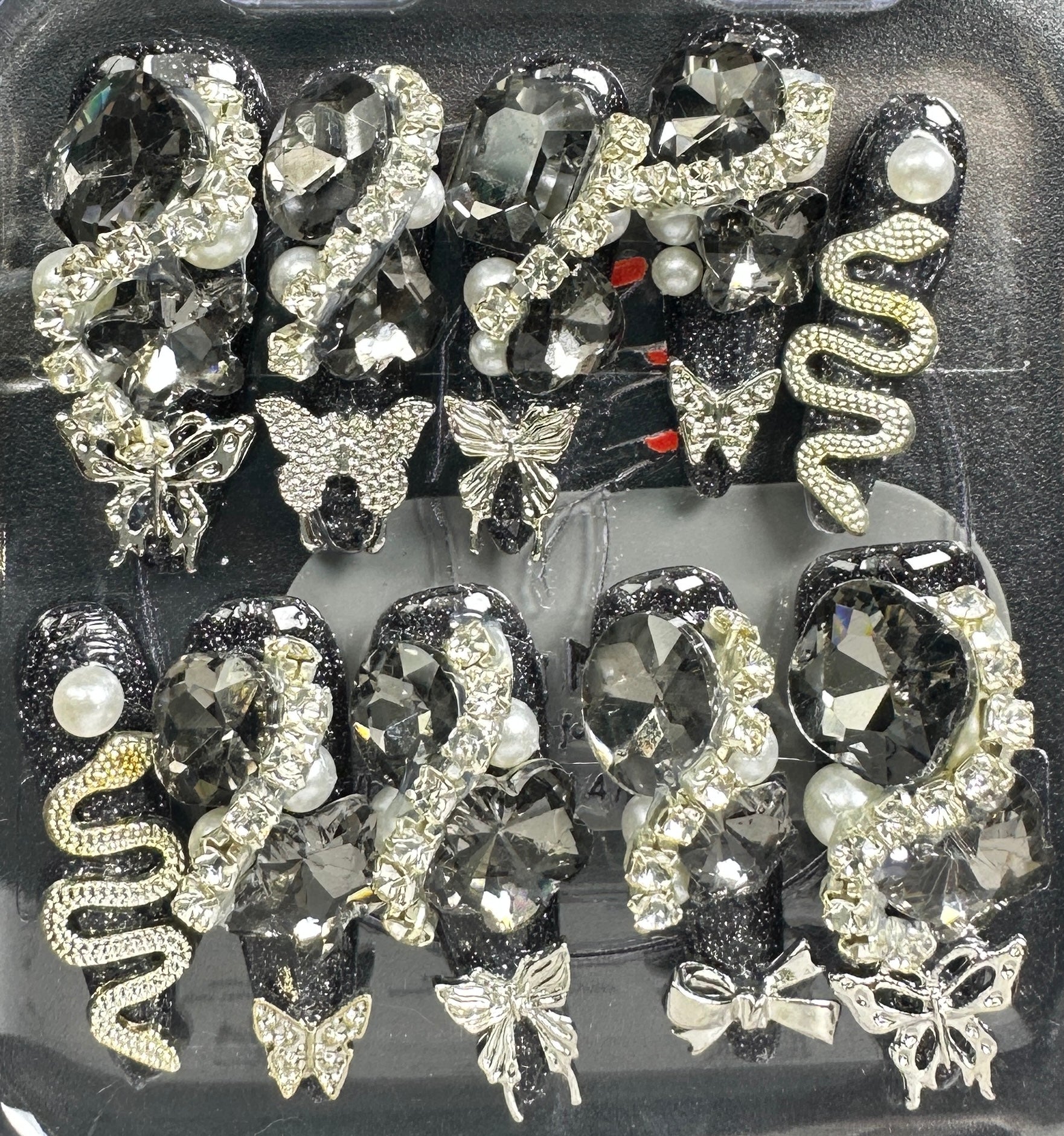 The Blossom & Glamour Collection – every set is a handcrafted floral masterpiece. Meticulous, multi-step artistry blooms on each nail, adorned with crystals and ornate details. Each design is one-of-a-kind, waiting for its only owner.