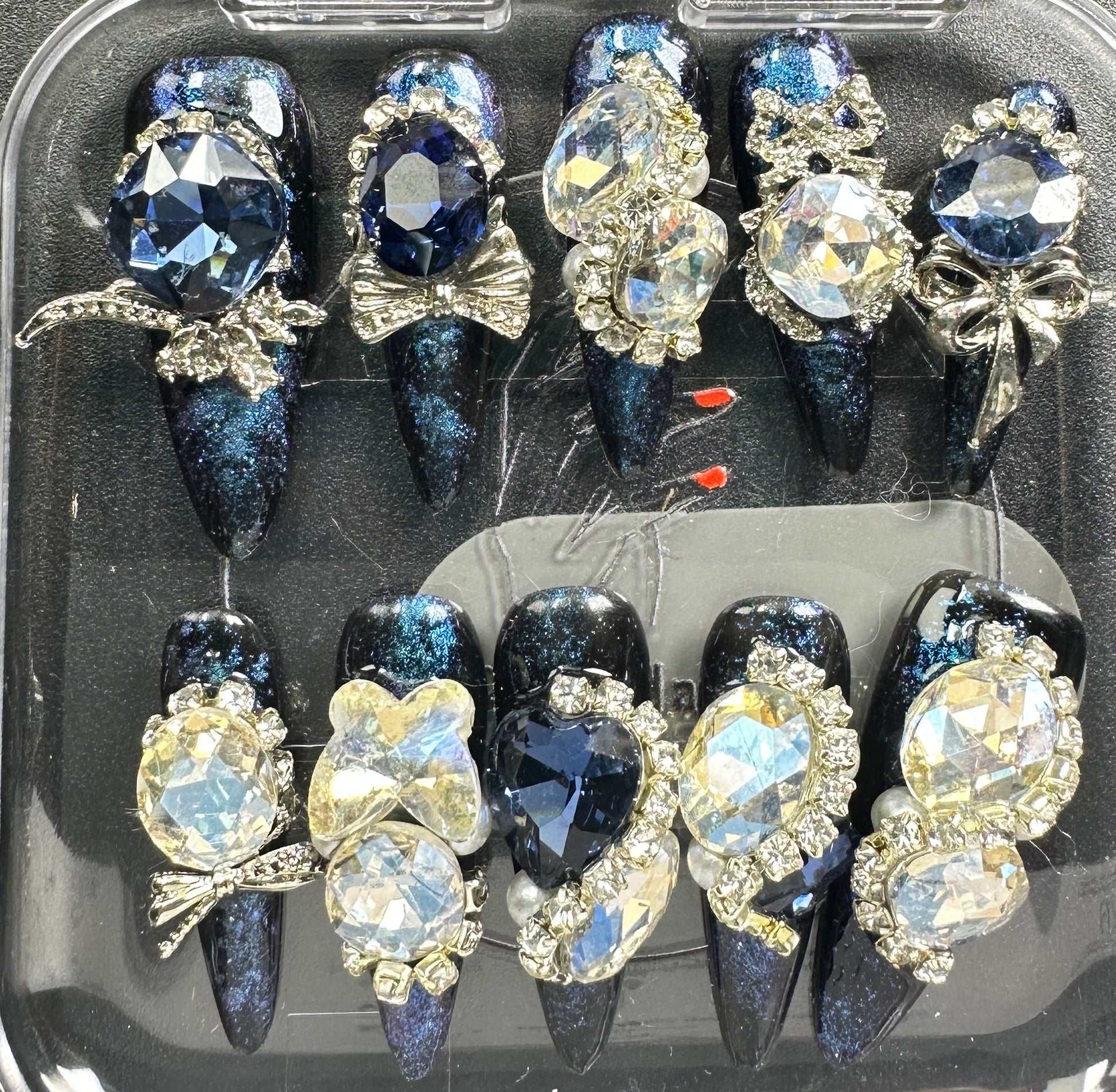 The Blossom & Glamour Collection – every set is a handcrafted floral masterpiece. Meticulous, multi-step artistry blooms on each nail, adorned with crystals and ornate details. Each design is one-of-a-kind, waiting for its only owner.