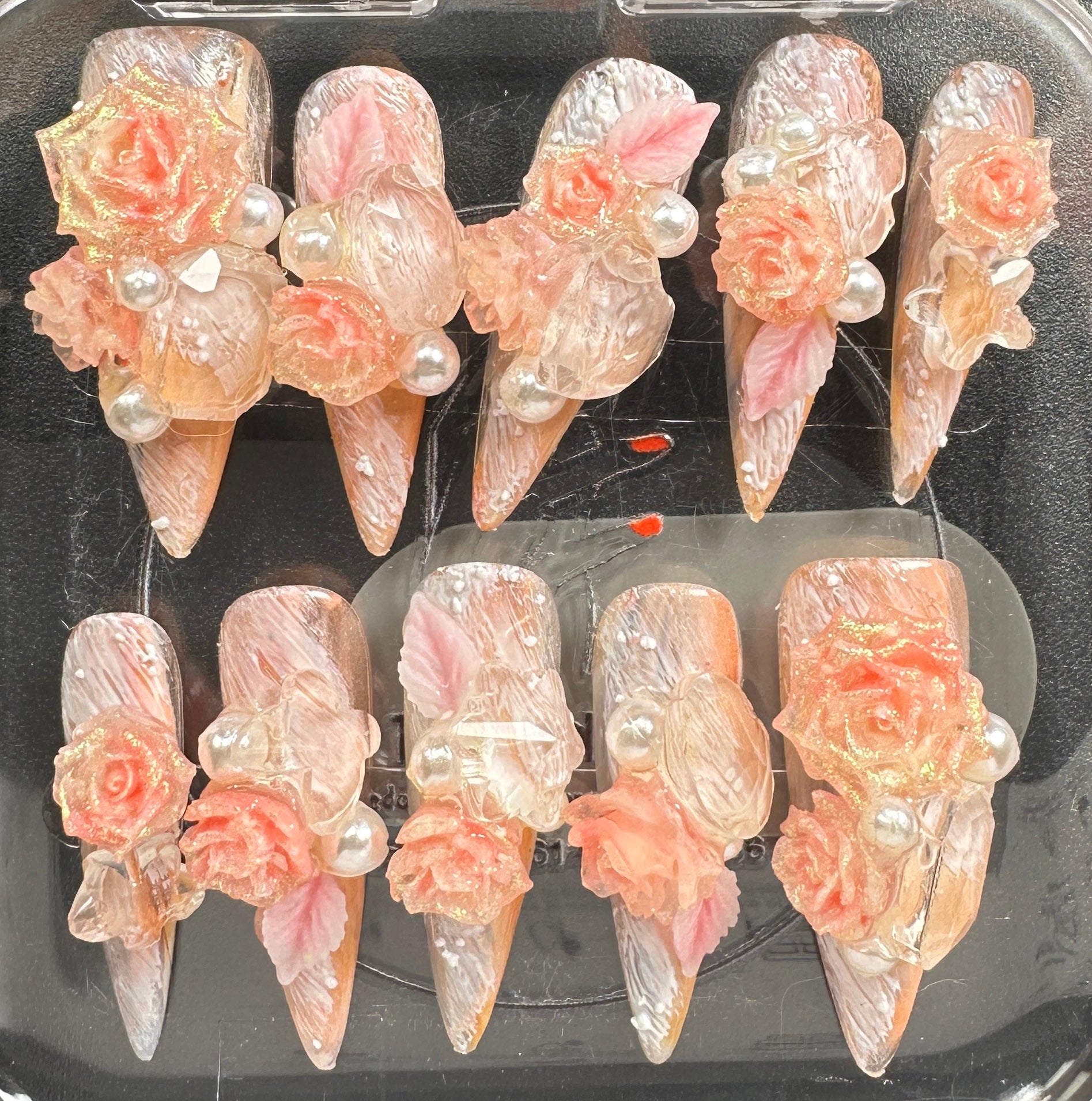 The Blossom & Glamour Collection – every set is a handcrafted floral masterpiece. Meticulous, multi-step artistry blooms on each nail, adorned with crystals and ornate details. Each design is one-of-a-kind, waiting for its only owner.