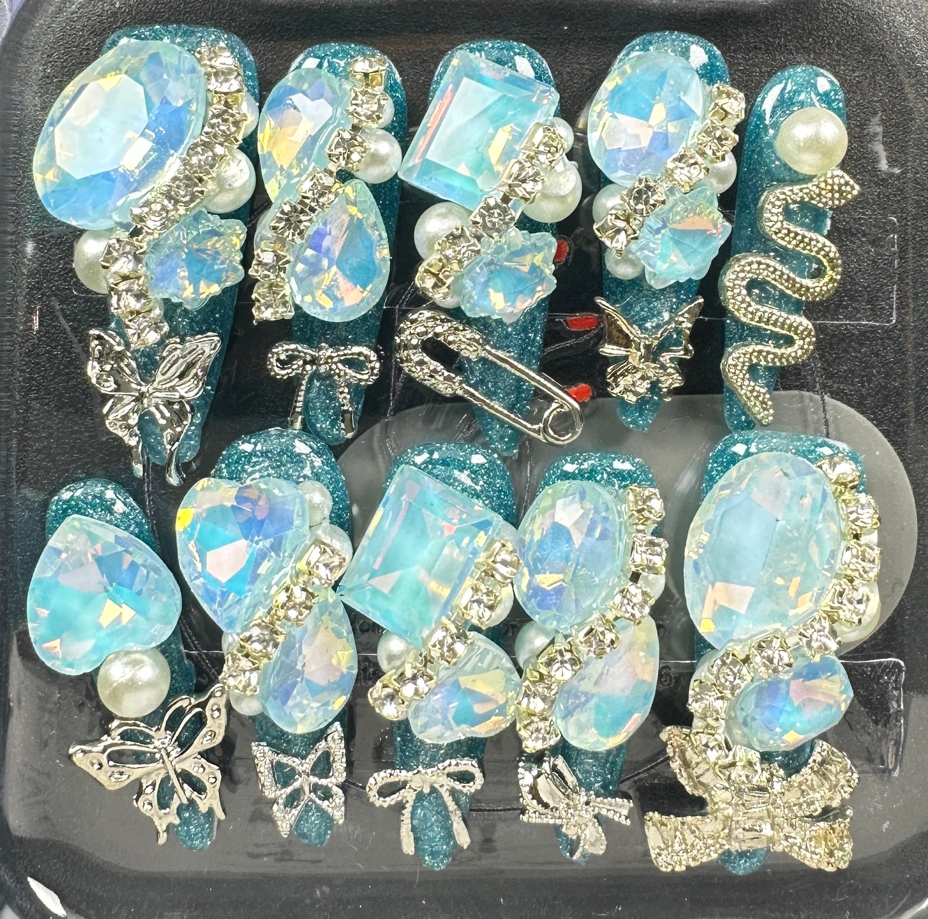 The Blossom & Glamour Collection – every set is a handcrafted floral masterpiece. Meticulous, multi-step artistry blooms on each nail, adorned with crystals and ornate details. Each design is one-of-a-kind, waiting for its only owner.