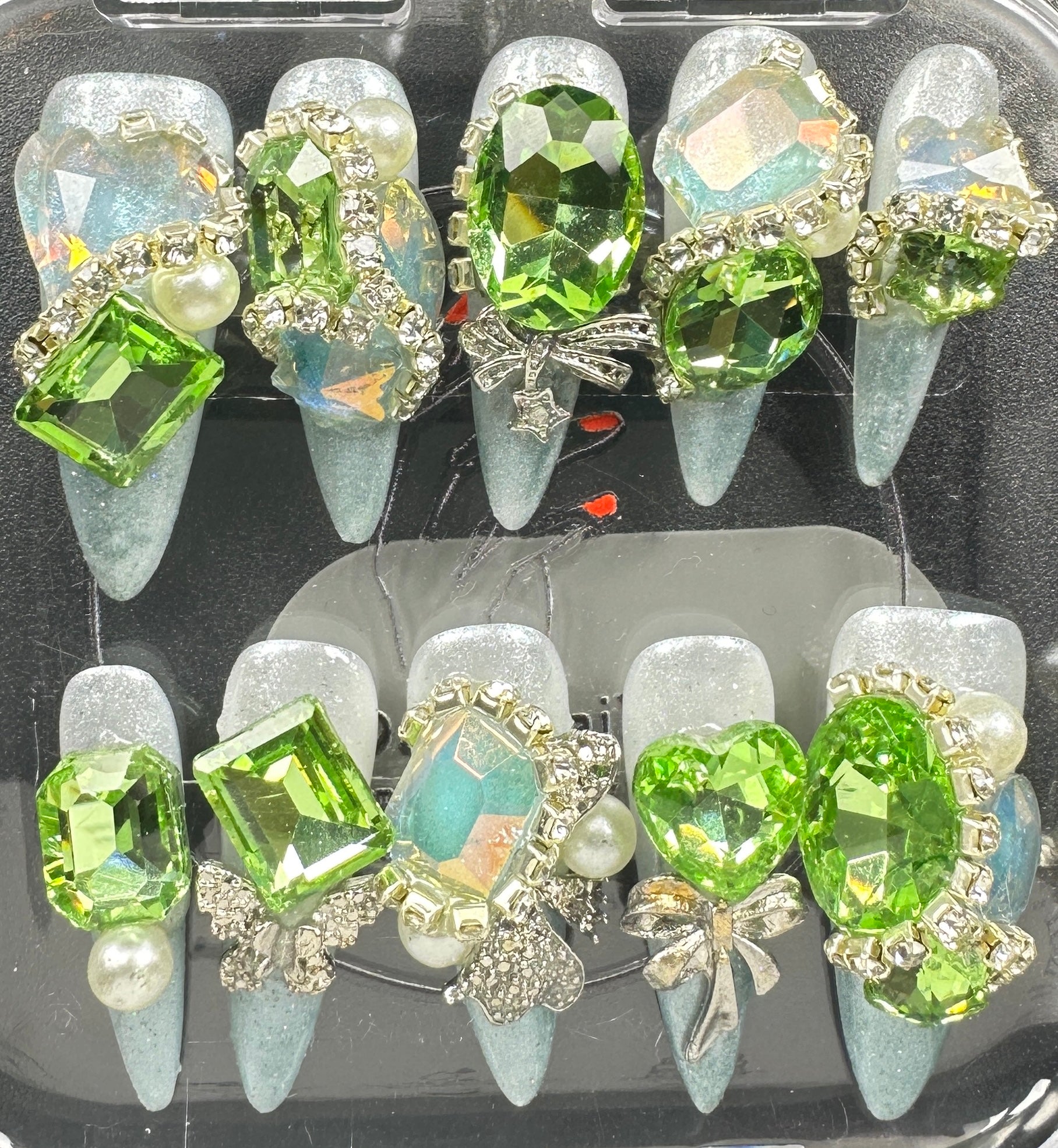 The Blossom & Glamour Collection – every set is a handcrafted floral masterpiece. Meticulous, multi-step artistry blooms on each nail, adorned with crystals and ornate details. Each design is one-of-a-kind, waiting for its only owner.
