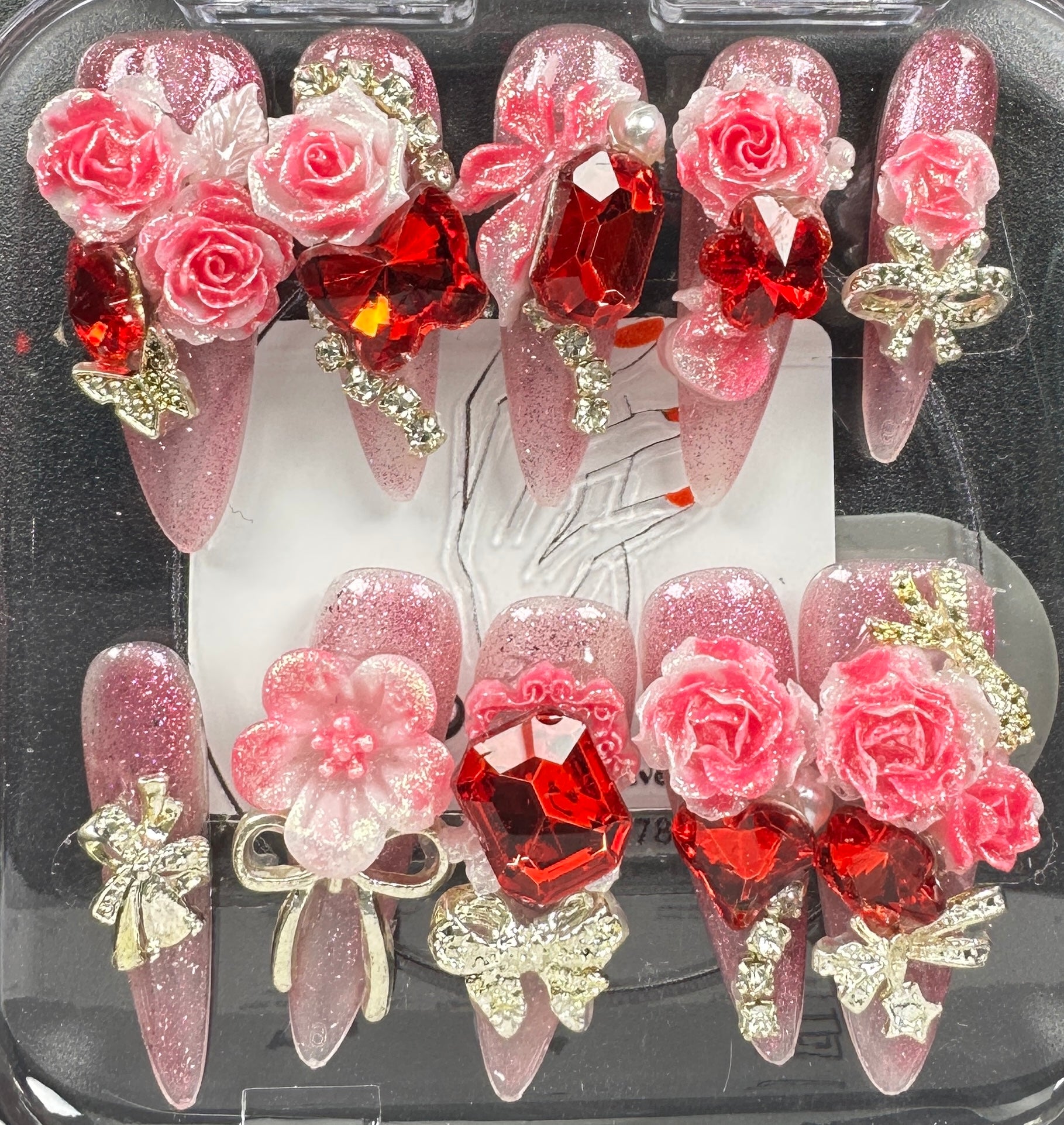 The Blossom & Glamour Collection – every set is a handcrafted floral masterpiece. Meticulous, multi-step artistry blooms on each nail, adorned with crystals and ornate details. Each design is one-of-a-kind, waiting for its only owner.